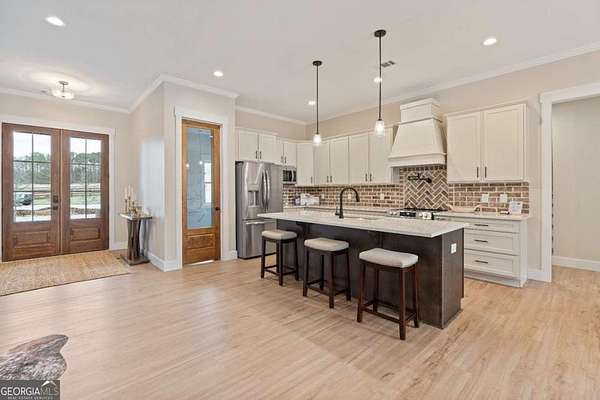 New Construction TO BE BUILT - The Stunning Elam Floor Plan by Southern Ridge Homes. NO HOA! Situated on 4.50 serene acres, this 5-bedroom, 3.5-bath masterpiece combines true craftsmanship with the modern amenities you've been dreaming of. The luxurious master suite offers private access to the covered patio, a spacious walk-in closet, dual vanities, a large soaking tub, and a beautifully tiled shower. Three additional large bedrooms on the main floor ensure everyone has their own comfortable retreat, while the bonus room with full bath upstairs provides the perfect flex space for guests, an office, or a hobby room. Designed for both style and function, the home features gleaming hardwood floors throughout the main living areas, an oversized laundry room conveniently located near the master suite, and a gourmet kitchen with a large island, solid surface countertops, stainless steel appliances, a vent hood, and a huge walk-in pantry. The separate dining room and open family room overlook the covered patio, perfect for entertaining or simply relaxing with a view. There's still time to add your personal upgrades and choose your color selections to make this home uniquely yours. Please note: Photos shown are of a model home for illustration purposes only. Actual home may vary in colors, options, and layout.