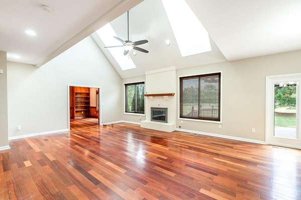 - 9 Ft + Ceiling, French Doors, Multi Panel Doors, Natural Woodwork, Skylight, Vaulted Ceiling
