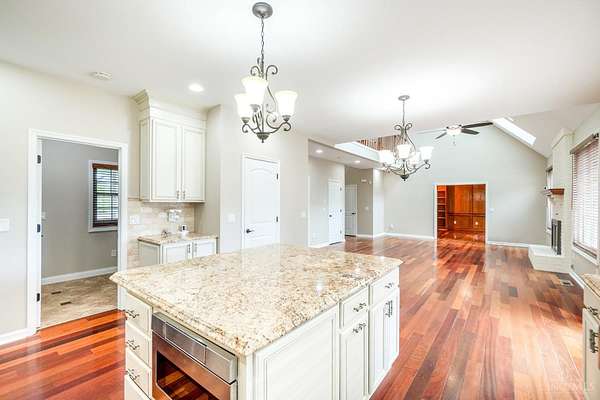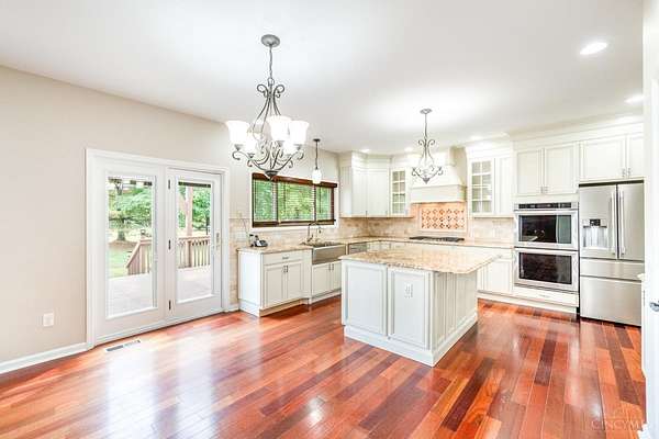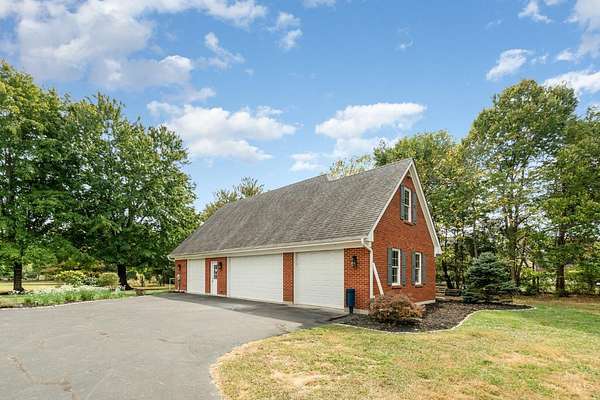 Your 5+ acre waterfront oasis awaits! Recently refreshed and move-in ready, this stately true 5-bedroom home offers formal living and dining rooms, gorgeous 1st floor study with built-ins, spacious vaulted great room with skylights + brick fireplace, gourmet granite/stainless eat-in kitchen with center island, convenient laundry/mud room off garage, oversized primary suite with walk-in closet + attached dual vanity bath, and huge finished lower level with rec space/kitchenette/addt'l full bath. Brazilian cherry hardwood floors thruout 1st floor. New carpet in bedrooms/basement. Fresh paint. Newer roof/mechanicals. 3-car attached garage AND detached garage with 3 addt'l garage bays, workshop + storage loft. Plus an inviting front porch and rear deck/patio overlooking park-like acreage complete with a pond. All in a popular community close to it all!