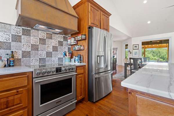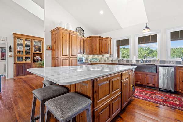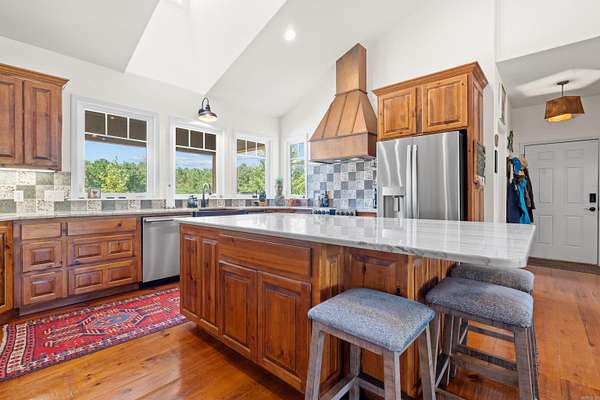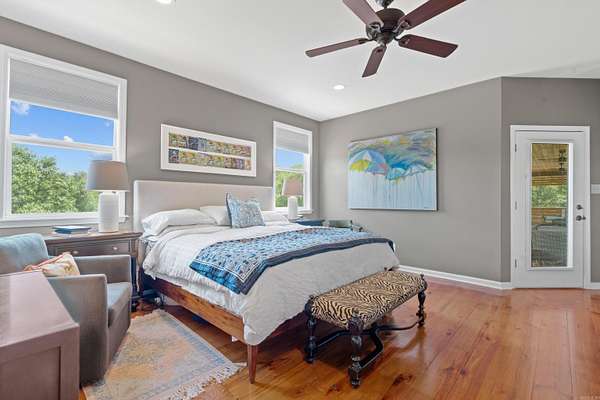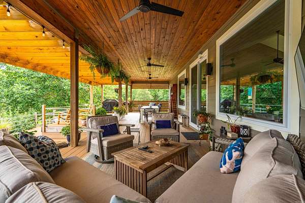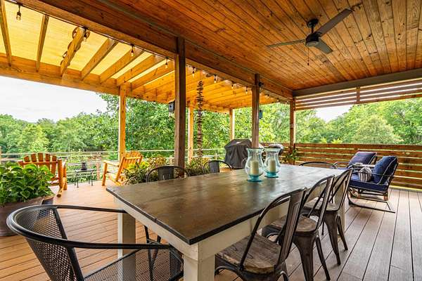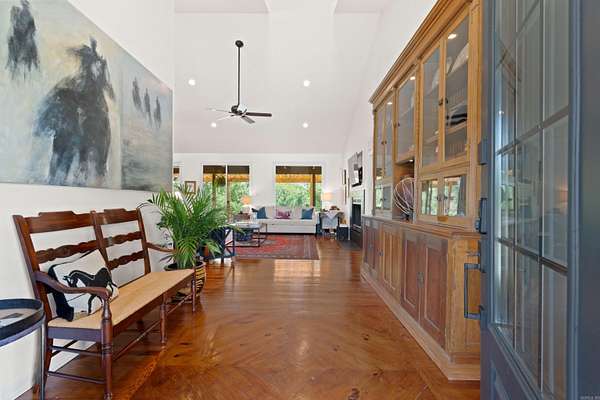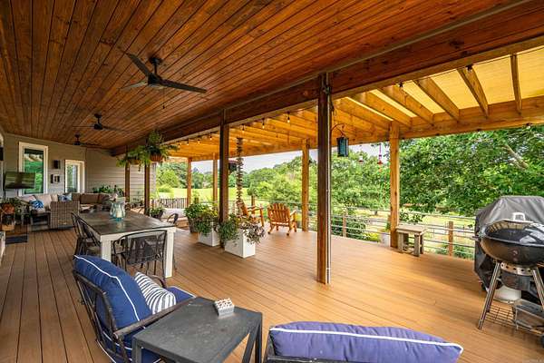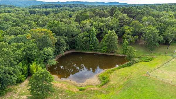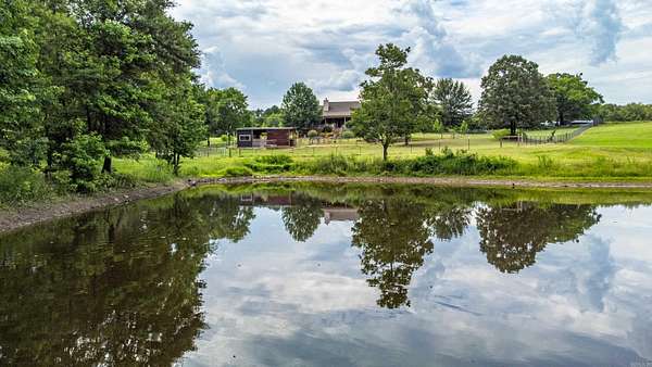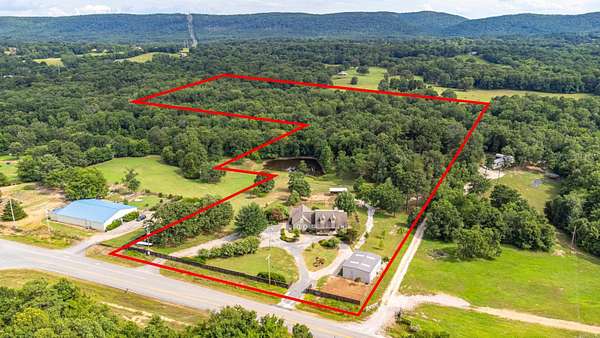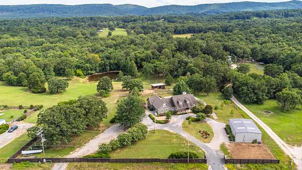 Luxury estate on 19.43 private acres with stunning mountain views. This home features vaulted ceilings, wood floors, and walls of glass. Gourmet kitchen with premium appliances, open floor plan perfect for entertaining. Primary suite with views and luxurious ensuite. Two additional bedrooms, bonus room upstairs. Recent updates: painted interior/exterior (2023-24), composite deck with 300-gallon hot tub (2023), new water heater with circulation pump (2023), landscaping with Japanese maples, roses, magnolia, dawn redwoods, tulip trees, gingko. New fence with electric gate at driveway (2023). Zoned HVAC. Property includes creek, pond, raised gardens, four acres fenced horse paddock with stall and tack room. 30x40 insulated shop with AC office space. Circle drive, two-car garage. Complete privacy minutes from Hot Springs.