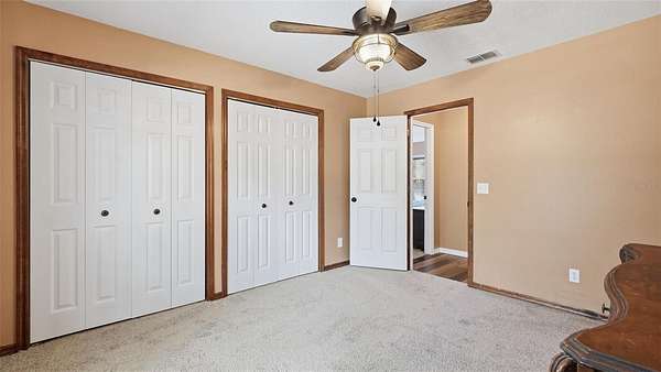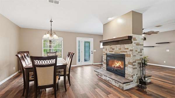 ENJOY COUNTRY LIVING in this beautiful RANCH-STYLE home on 2 acres (double lot) in the highly sought after Oak Forest community with NO HOA, so bring your camper, RV, boat, ATVS, pets, and toys!! NO FLOOD!! NO CDD!! 3 bedrooms + office + 2 full bathrooms + 1/2 bath + rock fireplace + 2-car garage + fully fenced with gorgeous iron fence and double gated entrance + large detached RV garage/storage shed (16x32). This is a neighborhood of one acre lots with beautiful custom homes on them. This home sits on a rare DOUBLE lot, so it offers 2 acres of privacy and a place for your family to enjoy the outdoors!! You can see the lot's impressive size just driving up to it and seeing the length of the iron fencing and the private gated entrance. Located near the end of a dead end road, so no through traffic!! Lots of quiet neighborhood roads to take long walks or ride your bikes. Enjoy warm nights around your beautiful fireplace!!