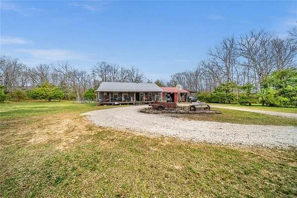 Tucked away on 56 total acres of peaceful Arkansas countryside, this charming 1,920 sq ft cabin offers an exceptional blend of privacy, space, and convenience just 20 minutes from town. The original 16-acre homesite features 4 cleared acres and 12 wooded acres, while an additional 40 acres nearby provides even more room to explore, hunt, or invest. Built in 2014, the cabin offers four flexible rooms, including a spacious primary suite with walk-in closet and private bath. The open-concept layout flows effortlessly from the family room to the dining area and generous kitchen with pantry, anchored by a cozy wood stove. Enjoy morning coffee or sunsets from the covered front porch. Additional highlights include a 32x30 attached carport with storage, unfinished attic for future expansion, established gardens, fire pit, horseshoe area, and a 100+ yard shooting lane. A rare opportunity to own a private retreat designed for comfort, recreation, and connection to nature.