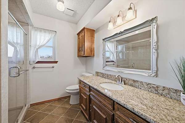 The kitchen is equipped with an island, extensive cabinetry, and direct views of the surrounding land, creating a central hub for the home. The primary suite is generously sized and positioned for privacy, with multiple closets and an en-suite bath. Secondary bedrooms are well-proportioned and supported by additional full bath space.