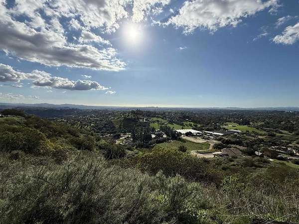 Welcome to your own private mountaintop retreat! This 25-acre property is located at the entrance of Fallbrook and offers distant ocean views that will take your breath away. A paved driveway winds up to two potential building sites, providing a perfect canvas for your dream estate. Utilities are ready to go with a 2 inch water meter, electric meters installed with three-phase power available. A drilled well adds incredible value for any agricultural plans and helps keep water costs down. A 3-bedroom septic layout is already on file, streamlining the building process. Just a stone's throw from the I-15, this property offers an easy commute while maintaining privacy and seclusion. With 25 acres of space, there's plenty of room for toys, animals, and more. A rare, once-in-a-lifetime opportunity to own a mountaintop in beautiful Fallbrook.