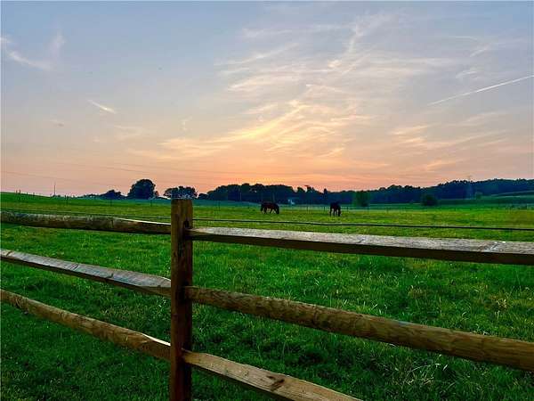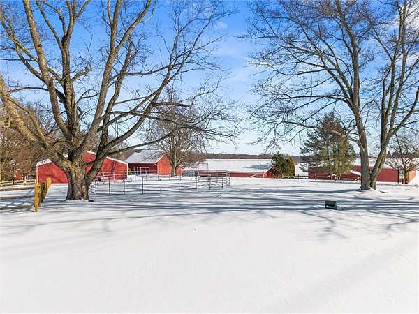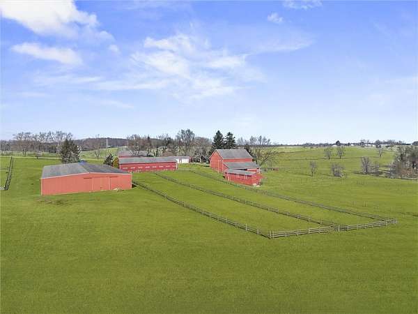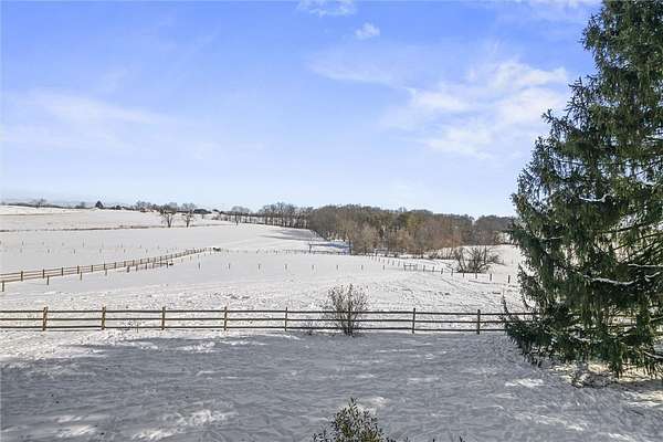 Welcome to a rare 147-acre scenic Saxonburg PA equestrian estate in Butler County offering flat, cleared, usable land with a cohesive, storybook farm aesthetic. Located in Western PA, near Pittsburgh, Cranberry, Mars. The estate residence is a 5-bedroom, 3 full bath home currently operated as a successful Airbnb. The enormous living room is anchored by two opposing stacked-stone fireplaces and opens through French doors to a covered, ceramic-tile side porch with sunlights, overlooking the lake. Rich wormy chestnut walls and trim add warmth and character, complemented by solid oak 6-panel doors throughout. The entertainer's kitchen shines with granite countertops and wall-to-wall shelving for exceptional storage, and French doors lead to an expansive deck with charming "cupcake" steps to the outdoors. The lower level offers ideal separation for an in-law suite, guests, or teenagers who want their own space. Additional highlights include a lighted tray ceiling in the dining room, well water, a spring house, and a septic system. Designed for serious horse people and big visions, this property is primed for an agricultural enterprise or a premier equestrian venue. Think 3-Day Eventing, Hunter/Jumper, Barrel Racing, Dressage, clinics, camps, or a full-scale showgrounds operation. 40 Minute commute from Downtown Pittsburgh. 10 minute commute to Giant Eagle.