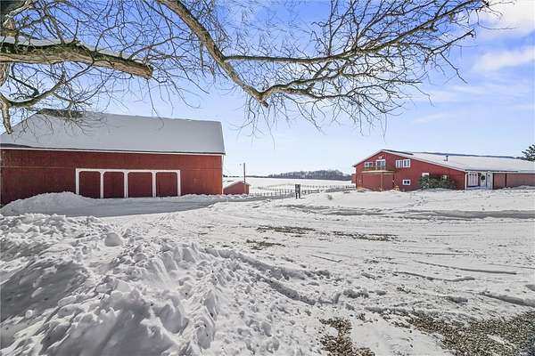 Built for year-round training facility offers both indoor and outdoor arenas. The 80x160 indoor arena features a high metal-truss ceiling, skylights, and bright overhead lighting, plus sand footing, white kickboards, and a full wall of mirrors for precision work. A heated lounge, and viewing room for clientele. A second smaller 56X49 indoor arena currently provides covered storage and flexibility for future use. Outside, enjoy a 100x200 sand arena, enclosed with wood fencing and positioned against a backdrop of open countryside.