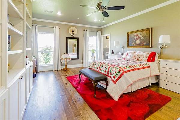 This spacious home includes two master bedrooms, each with its own private ensuite bath, along with two guest rooms for family or visitors. A versatile flex room can be used as an office, gym, or additional living space. For added security, the property includes security cameras and a safe room.