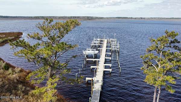 At no fault to the Sellers, this great home is back on the market! Nestled on nearly 2 acres with a deeded boat slip and lift in a peaceful and desirable boating community, this great split floor plan 3-bedroom, 2-bathroom home with an office offers the perfect balance of convenience and serene living. If you are looking for storage, you will find plenty of it as each bedroom has its own walk-in closet, and the primary suite comes with two of them! Located in a highly sought-after school district, with quick access to military bases, Highway 17, and the stunning beaches of the Crystal Coast, this property is ideally positioned for both work and leisure. Recently enhanced with over $100,000 in upgrades, the home features a 24' deeded boat slip with lift for effortless water access, fresh paint, plush pet-friendly carpeting, and expanded concrete pathways leading to charming outdoor spaces, including a fire pit, workshop, and a delightful 'she shed.' Designed for reliability and comfort, the property includes a 20kW whole-home generator, a 500-gallon underground propane tank, a deep well, a new hot water heater, and an advanced water filtration system. Professionally designed landscaping completes the serene setting, making this property an ideal retreat for those seeking a quiet lifestyle in a welcoming community with unmatched convenience.