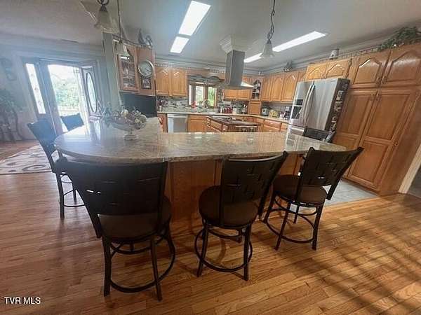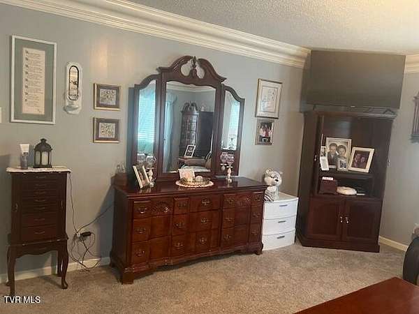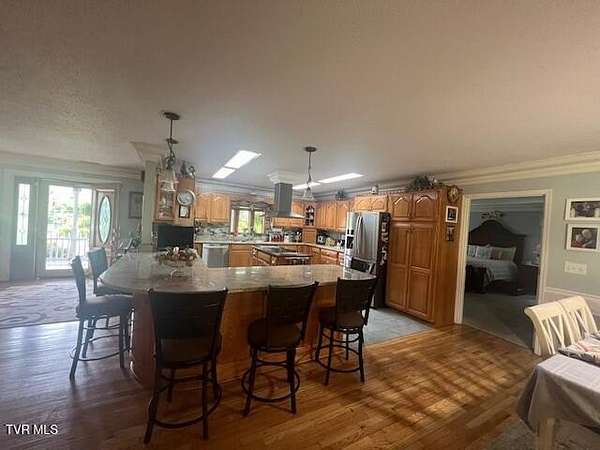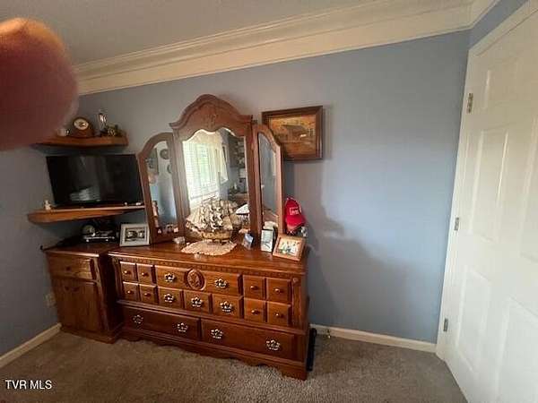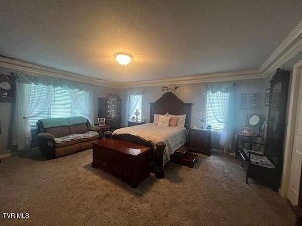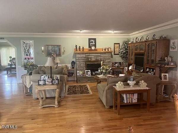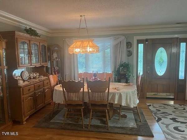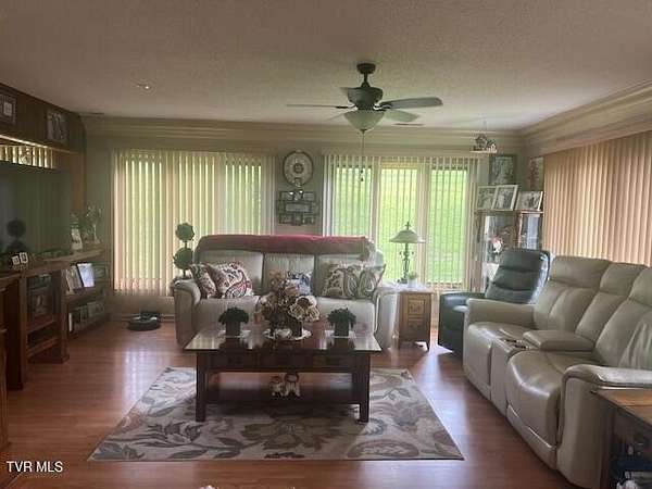 Escape to a private and serene country setting in beautiful Northeast Tennessee where cool mountain breezes flow. A meandering paved drive leads to this custom built ONE LEVEL sprawling ranch with enormous size rooms featuring hardwood floors (den has laminate), 3 bedrooms and 2 full baths. The great room has a woodburning fireplace and the den has a free standing fireplace w/gas logs.. Custom wide crown molding accents the great room, primary bedroom and den. The spacious kitchen features: granite countertops, a cooktop, refrigerator, dishwasher, microwave, wall oven, snack bar, and an abundance of custom cabinetry. An office adjoins the comfortable den. Enjoy the sunroom on cold winter days. The oversize spacious garage has storage rooms and there is an additional storage room for lawn equipment on the back plus storage for a 17.5KW Diesel Generator. Relax on the covered front porch and enjoy the mountain view while a cool breeze flows. You will relish every moment of comfortable living here. This home is also ideal for entertaining. There are 1.82 lush green acres to roam and a fence row of grapes vines. THE BONUS: You will have part ownership in the fishpond stocked with bluegill, bass and catfish. What a delight to feed the fish. This property is only a few minutes to the food market, restaurants, bank, medical clinic drug store, barber and beauty shops, schools, Roan Mtn State Park, approx. 30 minutes to Sugar Mtn. and Beech Mtn. ski slopes and approx. 30 minutes to two hospitals. Roan Mountain, Tennessee is home to the world's larges Natural Rhododendron Gardens. . Hikers, this home is only a few minutes to the Appalachian Trail. This is a ''Rare Find Property.''