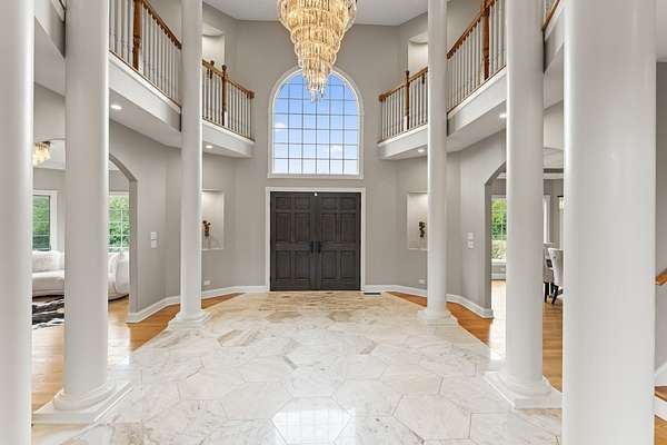 Elegant All-Brick Estate with Walkout Basement on 2.7 Acres in Inverness! This extraordinary all-brick, 5-bedroom, 4.5-bath estate in Inverness' prestigious Country Club Estates is a rare offering. Resting on 2.7 acres with sweeping views of open nature, this home combines timeless sophistication with extensive high-end upgrades. With a walkout basement and a 4-car garage, it offers every feature discerning buyers seek. The home welcomes you with an extremely elegant two-story foyer and opens into a two-story family room filled with natural light. The floor plan includes a kitchen with a spacious eating area, a gorgeous formal dining room, a formal living room, and a first-floor office with French doors and access to the rebuilt deck (2024)-perfect for work or quiet retreat. The walkout basement is a showpiece, recently finished with a granite bar, luxury spa-like bathroom, a bedroom/office, fireplace, workout room, and generous recreation space for poker, billiards, or movie nights. Major updates include: New roof (2024), new front door (2024), new sump pump (2025) and rebuilt deck (2024), Brick pavers replaced (2021) and garage epoxy flooring, Granite tile foyer, renovated powder room, and Restoration Hardware chandeliers throughout the main living spaces,All fireplaces fully renovated, including the primary suite fireplace with stone, granite, and glass doors, Expanded primary closet with custom built-ins and shoe storage, Two fully renovated second-floor bathrooms, Bonus room with wet bar and refrigerator (optional 6th bedroom). With upgraded lighting, hardware, and finishes throughout, this home is as move-in ready as it is breathtaking. All of this in the highly sought-after Fremd High School District. A true once-in-a-lifetime property-this all-brick Inverness estate offers elegance, space, and luxury at every turn.