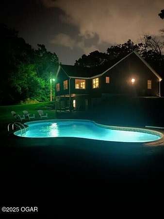 Paradise at home... the vacation home you never have to leave. Custom home on over 4 acres! Your very own oasis with 5 bedrooms, 3 full baths, and one 1/2 bath. Fantastic open great room/kitchen with huge island as well as room for a full size dinging table. The ''Crow's Nest'' offers quiet and gorgeous lake views. Full family room, wet bar, 2 bedrooms, office and amazing storage all available to you on the lower level. Which opens out to covered outdoor seating, leads to your pool, tennis court with fixed and mobile basket ball goals, in ground trampoline, and another trampoline, just in case. All of this and you are close to all amenities but have all of the privacy you desire. Homes like this do not become available very often. Do not miss our chance, your forever home is waiting!!!