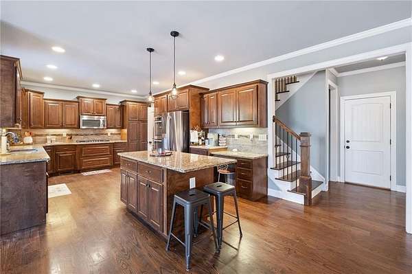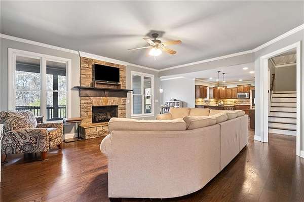 Distinguished gem! Country estate on three private acres with full terrace-level in-law suit, gated community in Creekview school district! If you need to house additional family, this is it! Terrace level has full in-law suite w living area, fireplace, bedroom, full bath, full kitchen, washer/dryer hookup and private patio area. House thoughtfully built for numerous people with two water heaters and 3 HVAC units. Everyone has hot water! Every level controls their temperature! And look at this! Terrace level has additional ample storage/extra expansion space. Main level has hard woods throughout with elegant stone fireplace. Wide kitchen with abundant storage space, eating area and eat-in island. Primary bedroom has generous amount of space and awaiting your decorating touches. You just have to see this primary bath! His/her sinks, soaking tub, separate shower and large walk in closet. Upstairs also has enormous multipurpose bonus room over garage. Hidden storage areas throughout home. Large screened porch and patio for perfect entertaining day to night. Deck spills into beautiful backyard surrounded by privacy trees. Pool in your future? You're set there too! Septic tank strategically placed on side of back yard with plumbing added to accommodate future pool. Nature trail on property right beside stream! Freshly painted interior. 5 minutes from shopping, restaurants and hospital. This quality rare so get here quick!