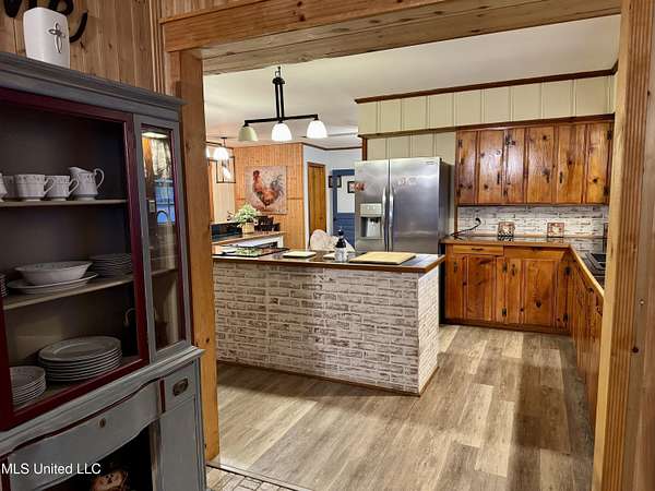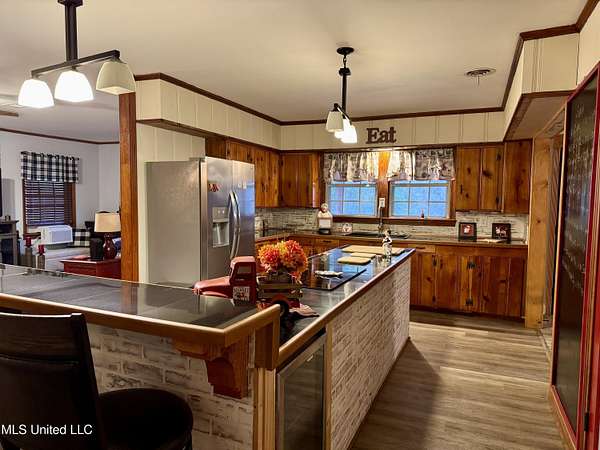 LOOKING FOR THE PROPERTY THAT HAS A SPACIOUS HOME, OVER 20 ACRES, SHOP, ASPHALT PARKING AREA & OTHER OUTSIDE SHEDS?? This could be it. This nice home has 3 bedrooms & 2 full baths. Open floor plan with den, dining area & kitchen that features an island, breakfast bar with overhead pendulum lights, nice countertops, electric stove/oven, walk in pantry & sliding barn door. Separate living room, office, exercise room & large laundry/mud room with a sink, stained wood ceiling & full bath. French door that leads from laundry to the back deck. Hall bath has a walk in tub, separate shower & double vanities. Covered front porch with fenced area & a covered deck that overlooks the acreage. Front circle driveway & 2 car covered parking with a metal roof. So much character in this home that you will need to see to appreciate. Survey is available.
