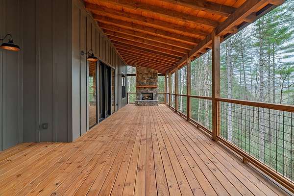A rare opportunity to own a Luxury Mountain Retreat where modern comfort meets timeless rustic charm. Experience Mountain Modern living in this stunning New Construction home designed to capture breathtaking year-round Mountain & River Views through the expansive wall of glass. Perfectly blending rustic elegance with modern design. This thoughtfully crafted home features upgrades throughout including custom cabinetry, rustic accent walls, duel fuel furnace, zoned heating and air, pella doors and windows, hot water recirculating system and more. Thoughtfully designed floor plan; The open-concept main level offers a spacious living, dining, and kitchen area centered around a gorgeous real Tennessee Fieldstone fireplace, creating the perfect gathering space. The main level also includes a large private master suite and convenient half bath for guests. The finished terrace level provides additional living space with a second family room, a built-in bar, two bedrooms, and a full bathroom—ideal for guests or entertaining. The Outdoor Living space is truly exceptional with two full-length covered porches, each featuring its own real Tennessee Fieldstone fireplace, giving you three total fireplaces throughout the home. Relax while taking in the Views and enjoying the peaceful sounds of Mountaintown Creek from the back porch. Situated on a 1.64-acre lot in a beautiful, nature-filled setting in Coosawattee, the property offers privacy and convenience with a circular driveway and plenty of space to enjoy the abundant wildlife and surrounding mountains. Coosawattee ameneties include gated access, indoor/outdoor swimming pools, tennis courts, river access, stocked fishing pond, and more.