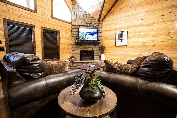 The Blue Eagle Cabin is a family friendly cabin nestled on 4 private wooded acres centrally located between Broken Bow and Hochatown. The cabin offers an open concept kitchen and living with three bedrooms and three bathrooms and approx. 2200 square feet of indoor and outdoor space.