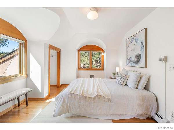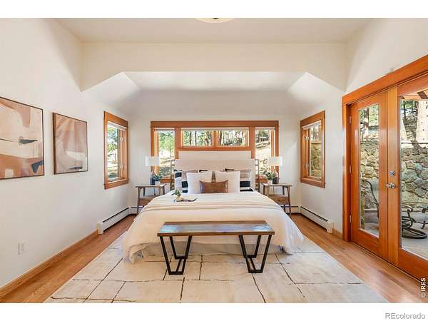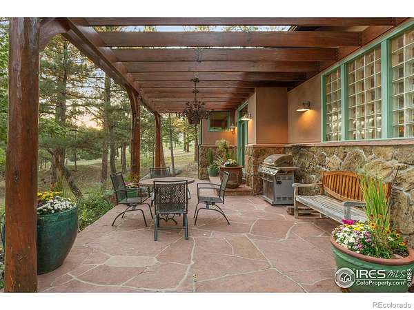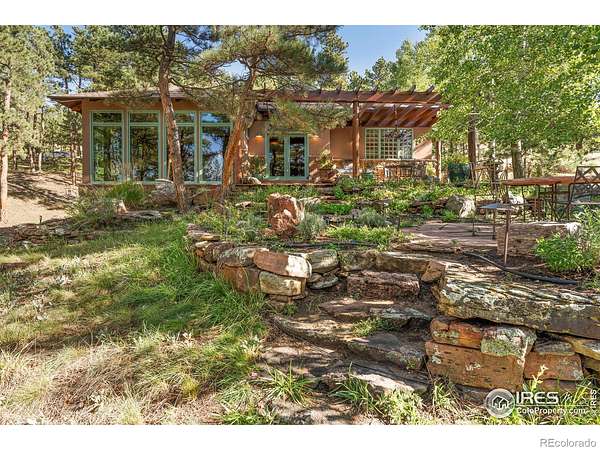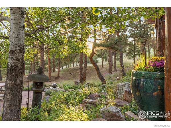 A peaceful sanctuary awaits off a quiet mountain road in Boulder's coveted Seven Hills enclave. Just 2.5 miles up historic Sunshine Canyon & less than ten minutes from downtown, this retreat offers a rare blend of open skies, sweeping vistas, & serenity seldom found so close to town. Set on two acres & bordered by a neighborhood nature conservancy that preserves uninterrupted views & privacy, the property blends nature, artistry, & refined mountain living. Gardens, water features, flagstone patios, & inviting outdoor spaces create a setting designed for relaxation & gatherings. Artfully updated by award-winning architect Stephen Sparn, the residence reflects timeless elegance deeply connected to its natural surroundings. A climate-responsive design optimizes passive solar exposure in winter & reduces heat gain in summer, creating a naturally comfortable & energy-conscious living environment. Balinese-inspired elements add warmth & sophistication. Natural light, organic materials, & wood details define the interiors, while distinctive eyebrow dormers showcase rare craftsmanship. Multi-level living room centers around floor to ceiling windows framing woodland views & light-filled space. The chef's kitchen feat. Sub-Zero & Viking appliances, a prep island, & breakfast bar ideal for daily living & entertaining. A private office & library with custom oak built-ins offer abundant study & workspace. The primary suite includes dual walk-in closets, a five-piece bath, & private patio access. Two upstairs bedrooms share a bath, while the lower level offers a rec room, fourth bedroom, bathroom, laundry w/ ample storage, & cedar closet-ideal for guests, au pair, or teen. A detached 2-car garage is topped by a finished studio or office w/ full bath & wide-plank cherry floors. Equal parts mountain refuge & refined residence, this Seven Hills property captures the spirit of Sunshine Canyon living-natural beauty, privacy, & easy access to downtown Boulder.