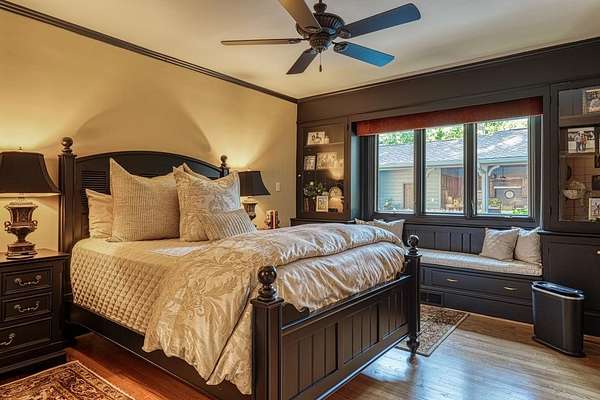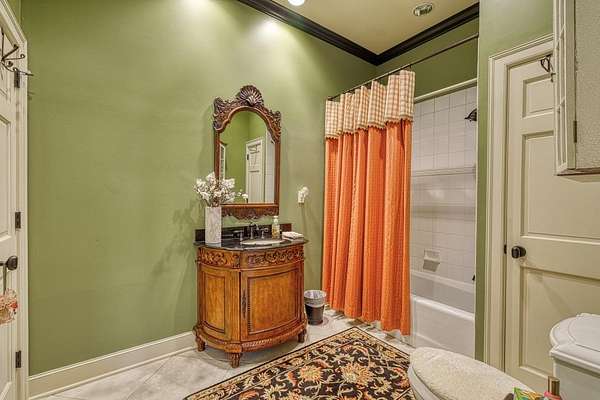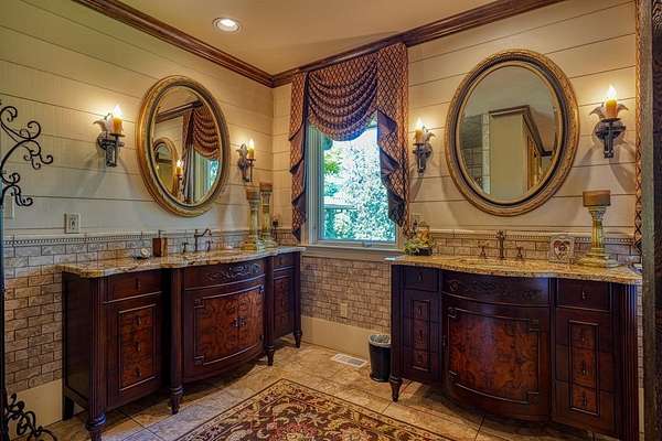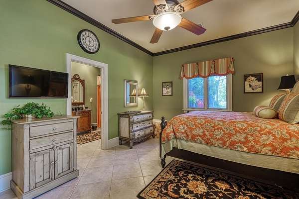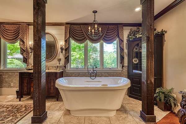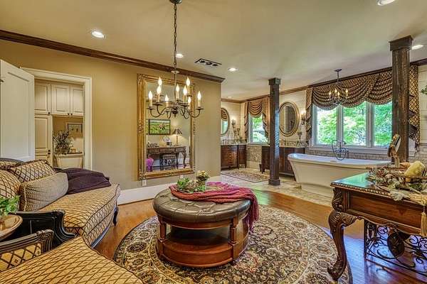 - Attic Stairs-Disappearing, Bookcases, Ceiling Fan, Ceilings-Blown, Ceilings-Smooth, Countertops-Solid Surface, Fireplace, Garden Tub, Gas Logs, Multiple Fireplaces, Second Living Quarters, Sky Lights, Walk in Closet, Wet Bar