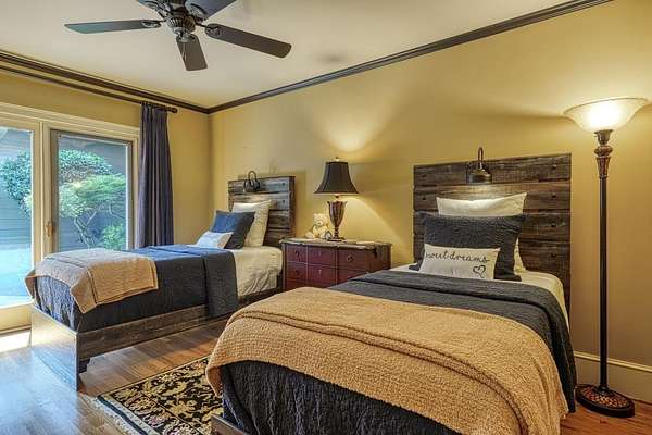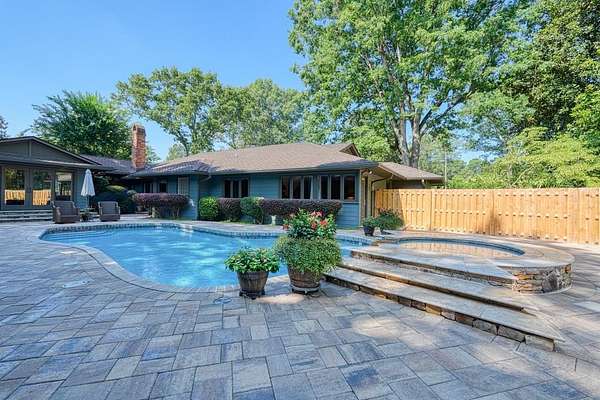 Welcome to an extraordinary mid-century residence perfectly positioned for modern luxury and gracious living. This stunning home, built in 1956, offers over 5,000 sq ft of refined interior space on a serene 1.73-acre wooded lot--a rare blend of scale and privacy just minutes from downtown Spartanburg. This 4 bedroom/4.5 bathroom home has timeless slate flooring flowing through parts of the home along with hardwoods leading to a spacious great room with exposed beams, and a cozy fireplace. A separate den with a second fireplace provides a perfect flex space, while the sunroom offers panoramic views of the tranquil pondless water feature outside. The kitchen is equipped with premium Thermador appliances, a gas range, a wine chiller, dishwasher, disposal, and ample counter space and cabinetry. A built-in office nook, breakfast area, and formal dining room add versatility and comfort to everyday living. The primary suite is a peaceful retreat with a sitting area, oversized walk-in shower, and a separate spa tub. Two additional bedrooms are connected by a convenient Jack and Jill bathroom, perfect for family or guests. Make your way outside to find an in-ground salt cell pool that features a "freeze mode", surrounded by lush landscaping and multiple entertaining spaces. The outdoor kitchen is fully equipped with a dishwasher, sink, gas range and a charcoal grill. Adding even more flexibility is the pool house, complete with its own kitchenette, laundry room, full bathroom, and private bedroom--perfect for guests, extended family, or an income opportunity. With a 2-car garage, thoughtful design touches throughout, and stunning outdoor features, this home is a rare find that truly has it all. Make it your own and schedule a showing today!