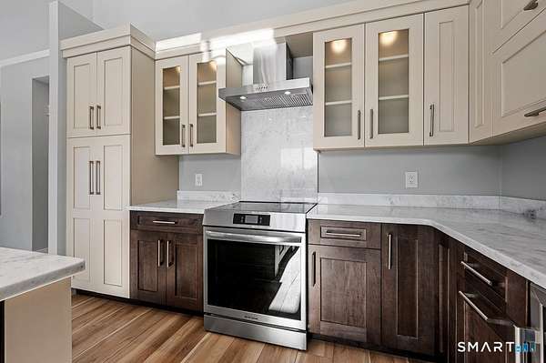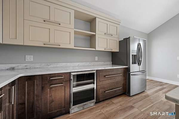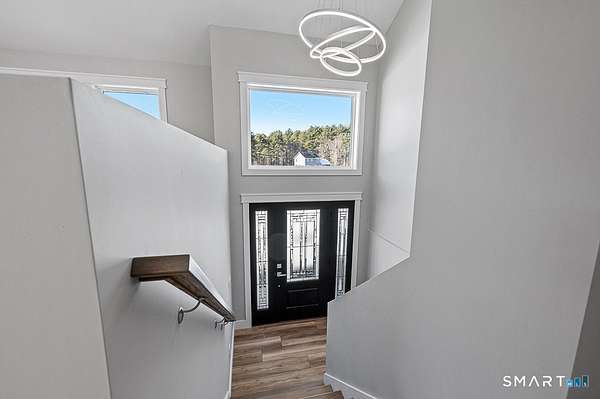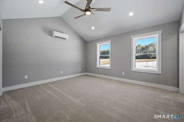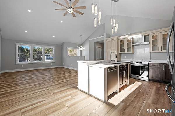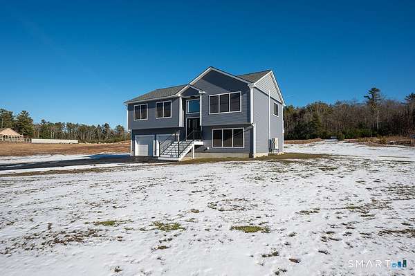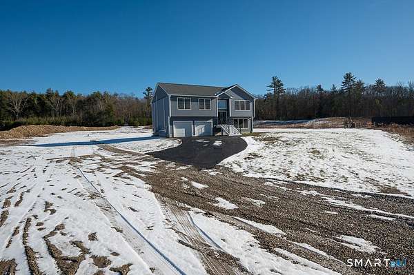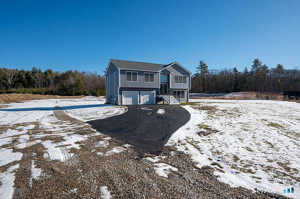 Welcome to your dream retreat-a stunning 2026 new construction custom raised ranch offering unparalleled luxury, craftsmanship, and privacy on 1.19 acres of pristine land. Conveniently located near I-395 and just 25 minutes from Worcester, Massachusetts, this meticulously designed 2,200 square foot home combines modern elegance with timeless appeal, perfect for those seeking a serene escape. Step inside to soaring cathedral ceilings that grace all three bedrooms and the main living areas, creating an airy, open ambiance enhanced by stylish ceiling fans for year-round comfort. The heart of the home is a chef's paradise: a custom DesignCraft solid maple kitchen featuring gorgeous crystallized granite countertops, a spacious center island, and a deep-seated Franke sink. High-end appliances, including a built-in under-counter wine cooler, elevate every culinary experience. Throughout the home, Craftsman-style custom wood trim adds warmth and character, complemented by solid interior doors and durable interior plaster walls. Modern high-end lighting fixtures illuminate the space beautifully, while the high-efficiency Mitsubishi Hyper-Heating and cooling system ensures optimal comfort in any season with cutting-edge energy savings. The thoughtfully designed layout includes a convenient first-floor laundry room and a spacious lower level with 9+ foot ceilings, expansive living space, and a full bath. Endless opportunities await in this exceptional property