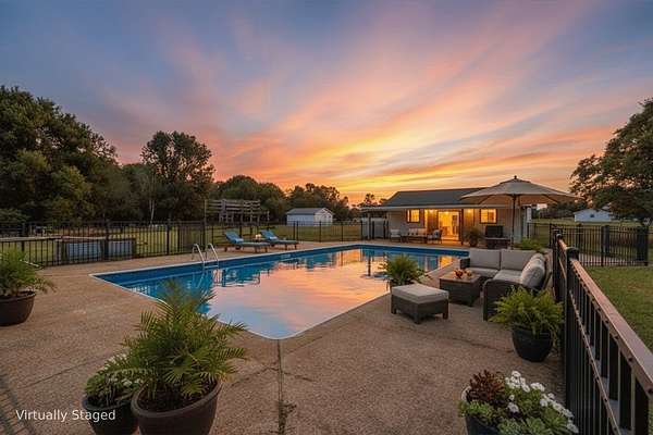 Timeless Country Estate. Nestled on 7 level acres, this stately classic brick blends elegance and comfort with room to roam. This grand 2 story traditional family home offers 4 br and 3.5 baths, with approx. 4,640 sq ft of thoughtfully designed space. You will explore an expansive floor plan featuring a formal dining room perfect for family gatherings and a spacious great room with a cozy wood burning fire place- ideal for everyday living or hosting friends and family on holidays. The well-appointed kitchen serves as the staple of the main floor with its abundance of both counter space and storage including pull out custom inserts in the cabinets. Also offers an eat in kitchen area, bar seating and a center island for flexibility. Just off the kitchen is the perfect home office or play room, equip with French doors for privacy and its own entry. Upstairs the primary suite is a retreat, with its own wood burning fireplace. Imagine the sanctuary that your could create here. The other 3 bedrooms provide comfortable accommodation's for a large family or all the guests. And the basement adds a bonus for rec- space, hobbies or storage. You can have that man-cave and the hobby room of your dreams. There's plenty of space. A wood burning stove is an added touch. There's even a private entry so just imagine the possibilities. Outside is an oasis. Bring on the Sun and invite the family. The fenced in-ground pool is where you'll be spending summer and making memories that last a lifetime. There's even a pool house with changing room and covered patio for cookouts. With the addition of an fenced area for animals and a small shop for whatever your heart desires, you could build a life and legacy that lasts for generations. There is ample space here. You can have it all. The large family home, the mini farm, the huge garden to get lost in for hours. All right outside of Lawrenceburg with an easy commute in either direction. Come relax here. Sellers are motivated.