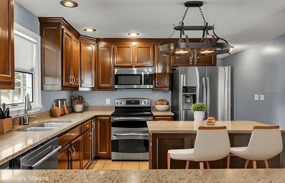 - Dishwasher, Double Oven, Electric Oven, Electric Range, Microwave, Refrigerator, Stainless Steel Appliance(s)