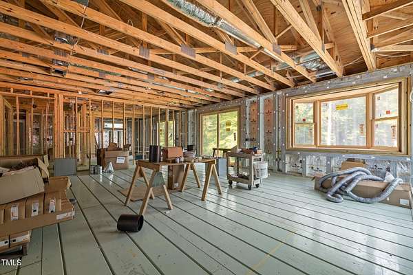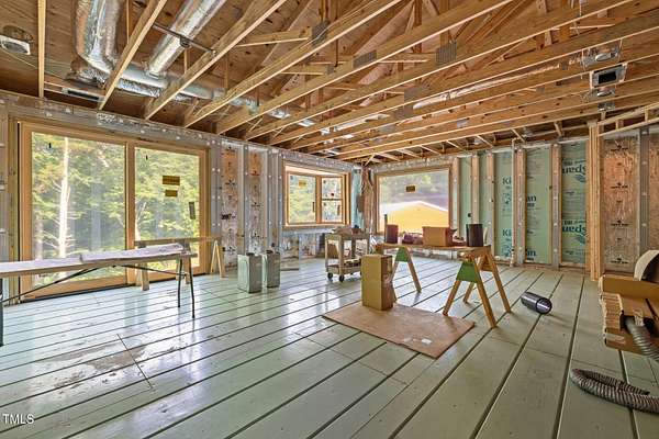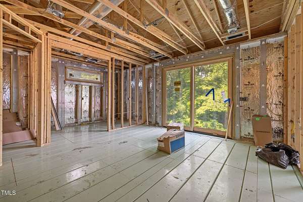 Customize your dream home on 3+ Acres with no HOA! Discover a rare opportunity to bring your own builder to finish a new construction home nestled in serene Pittsboro, NC. Situated on over 3 private acres at the end of a quiet cul-de-sac, this partially-completed custom build is a blank canvas ready for your personal touches. The thoughtfully-designed floor plan offers 3 spacious bedrooms, 2.5 bathrooms & a 3-car garage on the main level, along with 2 additional bonus rooms (potentially a 4th bedroom) and a 2-car bonus garage in the basement, providing ample space for future expansion, storage, or recreation. That's right - this home has 2 garages! The main level is equipped with infrastructure for radiant heated flooring throughout, adding both comfort & energy efficiency to your future living space. This home is at the perfect stage for a buyer seeking to customize key finishes-including flooring, kitchen cabinetry & appliances, bathroom fixtures, smart home features and other elements. Bring your vision and finish this home to suit your style and needs! The property also includes an insulated 3-bay workshop to tackle any project. Located in a tranquil, wooded neighborhood with no HOA restrictions, you'll enjoy peace, privacy, and flexibility-yet you're still just minutes from downtown Pittsboro, Jordan Lake, and major commuting routes to Chapel Hill, Apex, and Raleigh. Home is eligible for a Freddie Mac CHOICERenovation Loan - contact the listing agent for additional information.