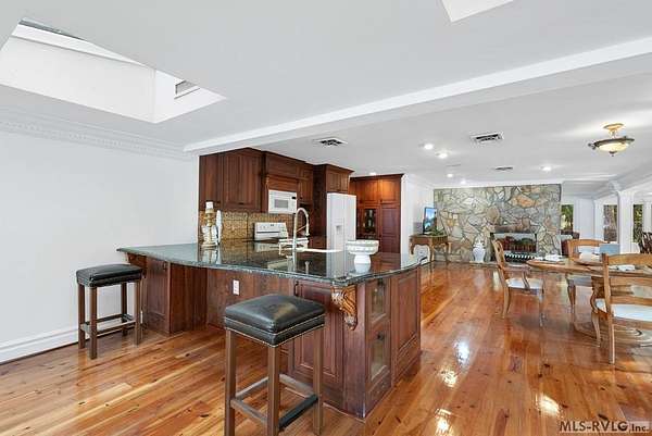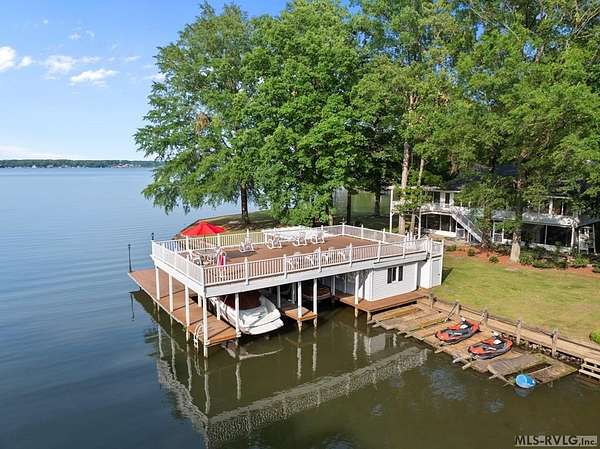 * BELLA VISTA * PRIVATE PENINSULA ESTATE WITH Approx. 792 FT OF SHORELINE ON LAKE GASTON A Truly Rare & Historic Offering This gated Approx. 3.00-acre Waterfront Estate nestled on a private peninsula in sought-after Eaton's Ferry Estates boasts over 792 FT of shoreline, comprising three parcels (an approx. 2.00-acre homesite plus an additional approx. 1-acre - 3.00 Approx. Acres Total), 3 Bed with 2 Undesignated Rooms. Features a 500-FT asphalt driveway with a double iron gate & a grand three-tier fountain centerpiece, custom-built 4,337 sq ft residence offers sweeping panoramic Lake Views from every room, wrap-around walls of windows, and 12 skylights. Rich in character and craftsmanship, the home showcases reclaimed tobacco barn hardwood floors, handcrafted moldings, 2 two-sided stone fireplaces, wet bar, gourmet kitchen complete w rare Florida cypress cabinetry and a Habersham island. Additional luxuries include a laundry chute, 4 imported pocket doors for true indoor-outdoor living. Outdoor amenities are unparalleled: Approx. 792 Ft of Wooden Bulkhead & Rip Rap, two deep water oversized swim docks, a 20 Foot x 50 Foot two-level boathouse w/ dual lifts, & 4 Jet Ski ramps. Entertain effortlessly w/ a full indoor/outdoor kitchen, brick pizza oven, screened & open patios, over 5,000 sq ft of stone walkways weaving through irrigated gardens filled w/ azaleas & roses. A separate workshop, treehouse, & multiple park-style seating areas complete the estate. Located in an active, friendly lakefront community with private lake access, boat ramps, tennis courts, parks, and picnic areas - plus easy access to the marina, shopping, & dining. Once-in-a-Lifetime property, Bella Vista, is a true Must-See! Call to schedule a showing or discuss financing opportunities!