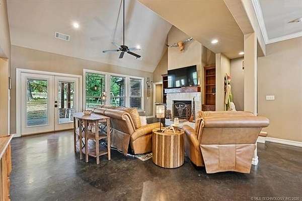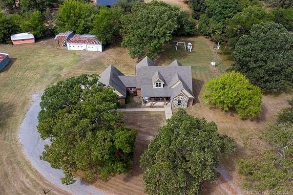 DO NOT LET DAYS ON MARKET STOP YOU. This place is GREAT! PRICED BELOW 2024 APPRAISAL - Where modern comfort meets peaceful country living. Surrounded by mature trees, open space, and beautiful views, this property offers privacy, functionality, and room to breathe. Property Features: - Large shop with electric - ideal for projects, storage, or business use - 20 picturesque acres with mature trees, wide-open spaces, and two ponds - Geothermal heating through stained concrete floors plus three separate AC zones for year-round comfort - Spray foam insulation in the attic for energy efficiency and lower utility costs - Generac whole-house generator for reliable, worry-free power - Bright, open living spaces designed for entertaining and everyday living - Spacious retreat-style primary suite perfect for relaxing at the end of the day - Three bedrooms on the main level, ideal for family or guests - Hidden room behind the bookcase at the top of the stairs - a fun and unique surprise - Covered front porch and back patio to enjoy the peaceful setting in every season Whether you're looking for a hobby farm, weekend escape, or forever home, this exceptional property offers space, privacy, and comfort-all just minutes from Ft. Gibson Lake.