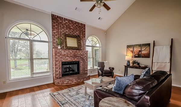 Welcome to this stunning property that has everything you could ever need. This 4-bed 3.5-bath home is over 3,000 square feet with tall ceilings, an oversized primary bed and bath, vaulted 10ft ceilings, and a large kitchen. Step outside to enjoy your waterfront view of over 2 acres of private lakes, professionally landscaped grounds, and rows of fruit and pecan trees. This property also has a newly built in law suit that is complete will a full kitchen, washer and dryer, full bathroom and is handicap accessible. There is also a fully insulated, heated and cooled shop that is over 1200 square feet that is perfect for a man cave, work shop, or storage. You do not want to miss out on this incredible property that really does have everything. Pictures coming soon!