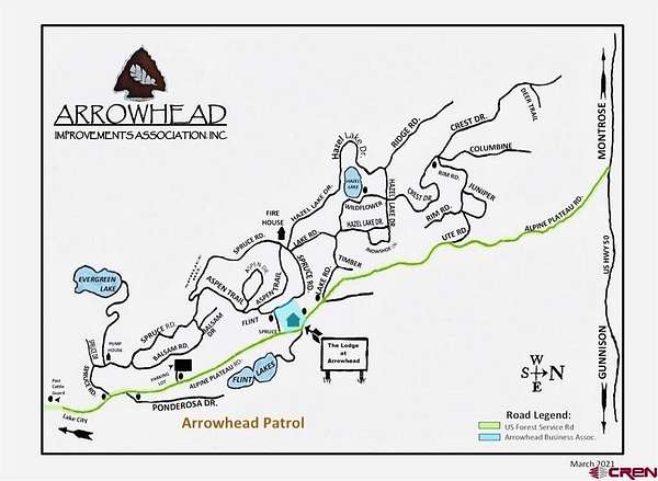 Jennifer Thomas, NextHome Virtual, C: 970-209-2378, jenthomas1515@gmail.com, www.crenmls.com: Located in the heart of the Arrowhead Subdivision. Lot is ready for you to build your dream cabin. Beautifully treed lot with tons of Aspens. Electric and water are very near. Also stop in at the beautiful Arrowhead Lodge and enjoy some music on the outside patio during the summer months. Arrowhead HOA grooms and maintains the roads for driving up to the main parking lot in the winter, after that it is snowmobiles or side by sides with snow tracks to your property.This property is located in the private community of the Arrowhead Ranch Subdivision. Great place to build your next dream mountain home as well! Hunting in area Unit # 66. There are bear, mule deer, elk and mountain lion to name a few. Snowmobiling, cross country skiing, snowshoe, ATV riding, hiking, fishing and biking are also major things to do in this area. Blue Mesa is a 20minute drive for salmon fishing. Uncompahgre National Forest has a lot to offer to the active outdoorsman. Great Lodge with12rooms to rent, full restaurant, bar and outdoor entertainment in the summer. Come checkout Cimarron Colorado!