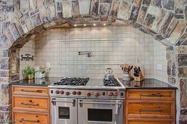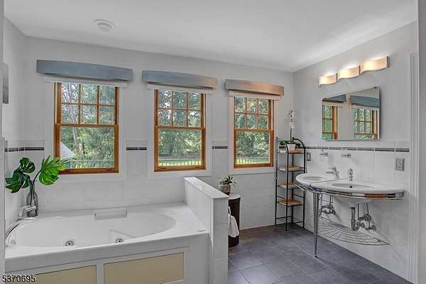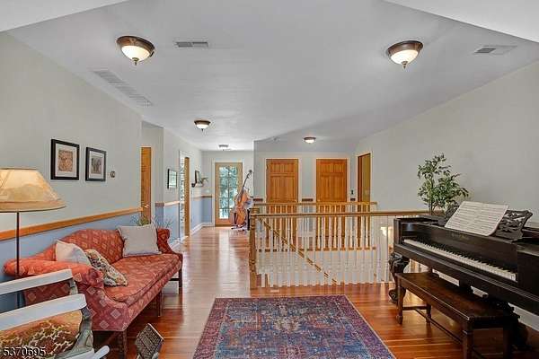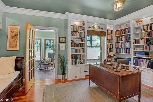 This one-of-a-kind custom home nestled in a secluded setting offers a unique blend of charm and modern sophistication. The floor plan combines an open flow between gathering areas with intimate spaces and plenty of options for home offices while large windows showcase the property's natural setting. Period details include hardwood floors, classic millwork, multiple fireplaces, and a distinctive watchtower. The large kitchen has plenty of space for homeowners and friends to enjoy its premium finishes including appliances, custom cabinetry, walk-in pantry, and a large center island. The primary suite features distinctive wood-paneled bathroom spaces with a clawfoot tub and separate shower stall and shower room, as well as 2 large walk-in closets and a sitting area. Additional bedrooms (including one on the 1st floor) provide flexibility for living arrangements. The oversized garage, full walkout basement, and barn provide plentiful storage and workshop/potting space. Outside, the striking bluestone patio overlooks a terraced perennial gardens defined by fieldstone walls with mature landscaping, open lawn areas, and a large pond brimming w/lotus flowers and waterlilies -- an inspirational setting for creatively-minded hobbyists and nature lovers. This exceptional hideaway offers easy access to commuting (Routes 78/31; NJ Transit bus/train), shopping (Clinton or Flemington), & recreational opportunities including nearby hiking trails, cycling roads, and Round Valley.