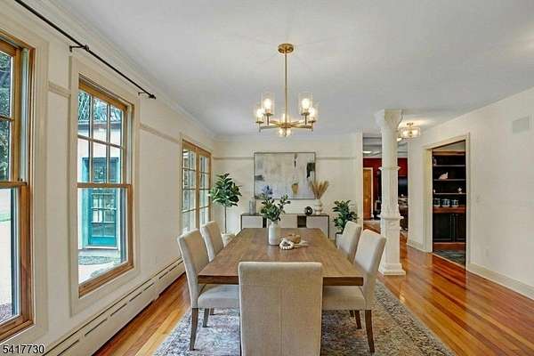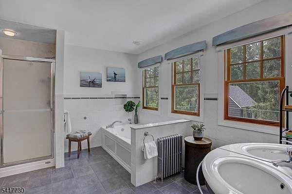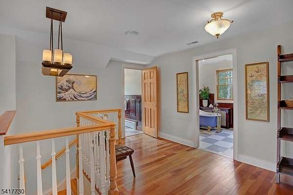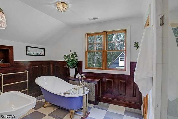 This one-of-a-kind custom home nestled in a secluded setting offers a unique blend of charm and modern sophistication. The floor plan combines an open flow between gathering areas with intimate spaces and plenty of options for home offices while large windows showcase the property's natural setting. Period details include hardwood floors, classic millwork, multiple fireplaces, and a distinctive watchtower. The large kitchen has plenty of space for homeowners and friends to enjoy its premium finishes including appliances, custom cabinetry, walk-in pantry, and a large center island. The primary suite features distinctive wood-paneled bathroom spaces with a clawfoot tub and separate shower stall and shower room, as well as 2 large walk-in closets and a sitting area. Additional bedrooms (including one on the 1st floor) provide flexibility for living arrangements. The oversized garage, full walkout basement, and barn provide plentiful storage and workshop/potting space. Outside, the striking bluestone patio overlooks a terraced perennial gardens defined by fieldstone walls with mature landscaping, open lawn areas, and a large pond brimming w/lotus flowers and waterlilies -- an inspirational setting for creatively-minded hobbyists and nature lovers. This exceptional hideaway offers easy access to commuting (Routes 78/31; NJ Transit bus/train), shopping (Clinton or Flemington), & recreational opportunities including nearby hiking trails, cycling roads, and Round Valley.