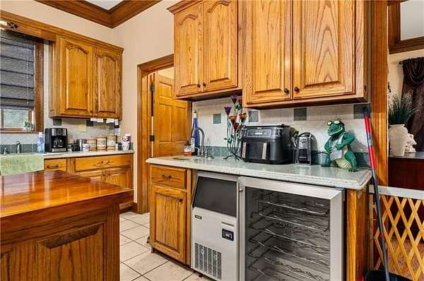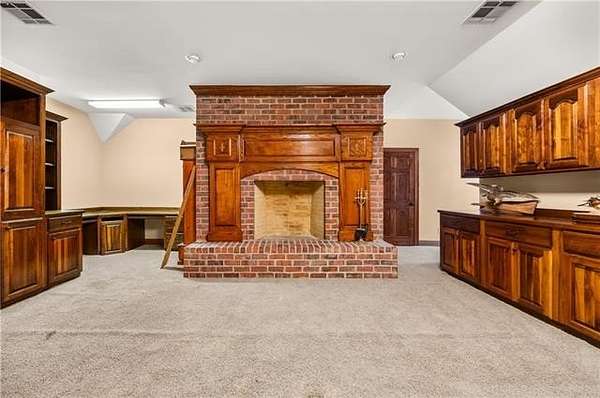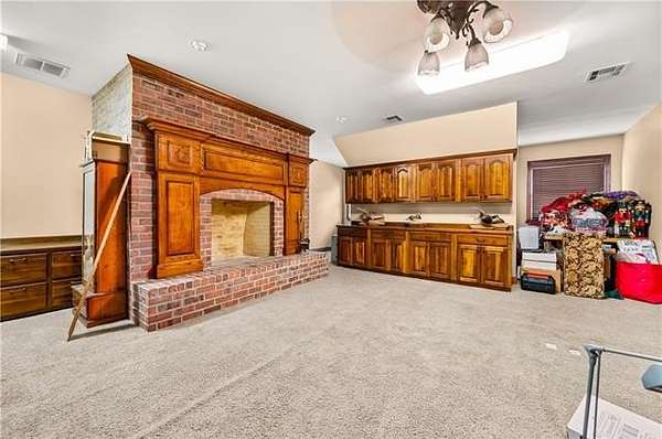 The home was built to last with 2x6 construction, a 3-ft thick slab, and a roof less than 3 years old. Interior features include a chef's kitchen with granite countertops, wine fridge, ice maker, and double oven; a built-in safe in the pantry slab; a game room; a library with custom woodwork and a second fireplace; and a spacious primary suite with his-and-hers closets.