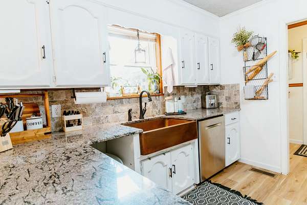 Welcome to this beautiful 4/3 home sitting on 2.2 acres. This home has everything you need. Large living room with one of a kind wood burning stove great for winter nights and entertaining. Spacious kitchen with granite countertops, 6 year old appliances, a beautiful copper farm sink, separate pantry and plenty of cabinets. The kitchen also has a breakfast bar area and opens into a good size dining area. 3 bedrooms upstairs allows for plenty of choices and the primary bath sports a nice walk-in shower. The basement is a great place for a mother-in-laws suite that includes a small living area, full bath with walk-in shower and lots of closet space. The back porch stretches across the back of the house with lots of room for outside entertaining. There is a 12X32 shop and 2 smaller out buildings that convey with the property as well as a tree house.