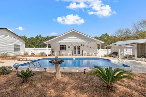 Looking for a home that truly has it all? This property combines updated living space, great amenities, and plenty of room to spread out-all on nearly 4 acres. This spacious 2-bedroom, 2-bathroom residence offers nearly 2,000 sq ft of comfortable living space, highlighted by an oversized master suite with a huge walk-in closet. The open layout and thoughtful updates make this home move-in ready while still offering plenty of character and warmth. Step outside to your large screened-in porch, the perfect spot for morning coffee, evening relaxation, or entertaining friends while overlooking the pool and landscaped grounds. Just beyond, a sparkling inground pool invites endless fun. Adding to the appeal is a fully finished and furnished 960 sq ft pool house, complete with heating, cooling, a full kitchen, and bath-ideal for guests, entertaining, or a perfect mother-in-law suite. For those who need space for work or hobbies, the 1,316 sq ft shop comes equipped with plumbing and is HVAC-ready, giving you endless options for a home business, workshop, or could easily be converted into additional living space. The 4-bay pole barn provides excellent storage for campers, boats, or equipment, making this property as functional as it is beautiful. All of this is surrounded by gorgeous landscaping on a wide-open, private lot in a quiet, desirable neighborhood. Despite its peaceful setting, the home is only minutes from restaurants, grocery stores, and daily conveniences-offering the perfect blend of seclusion and accessibility. This one-of-a-kind property truly has it all: updated living space, a large screened-in porch, backyard oasis, pool house, workshop, and plenty of storage-all on nearly 4 acres. Bring an offer and don't miss your chance to make it yours!