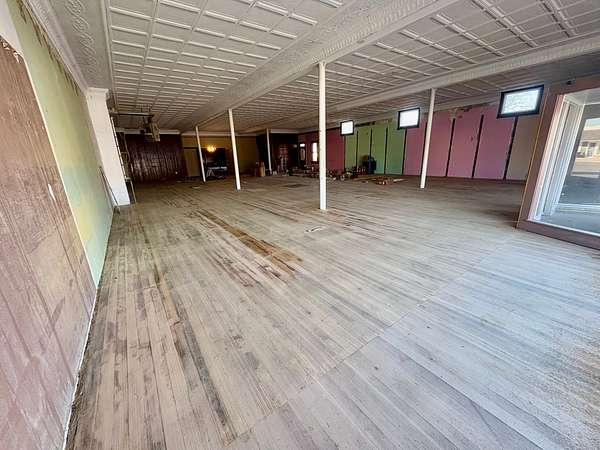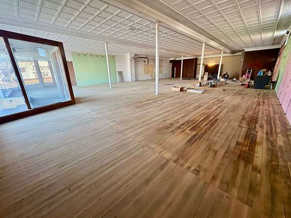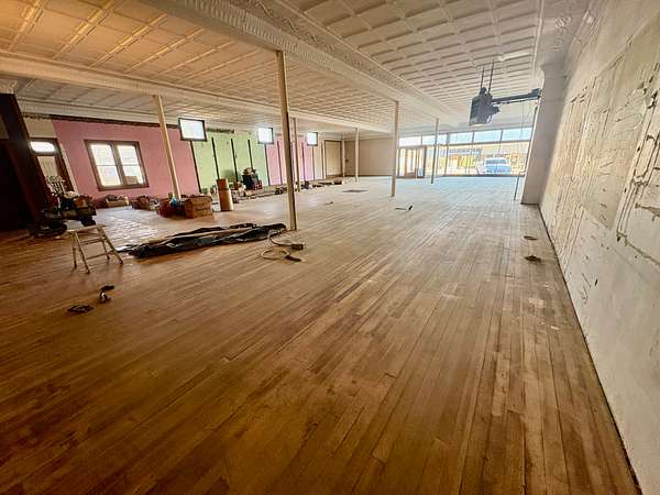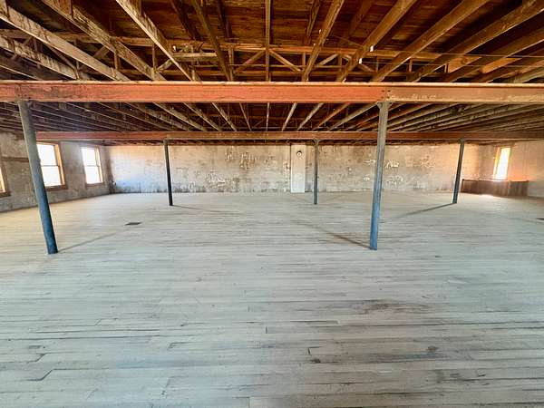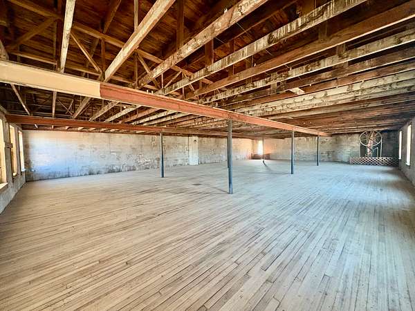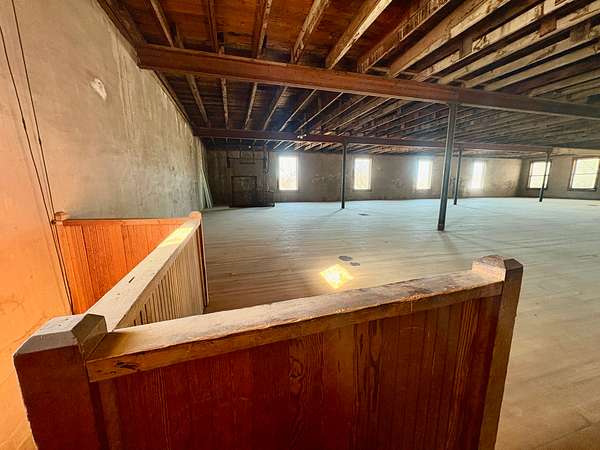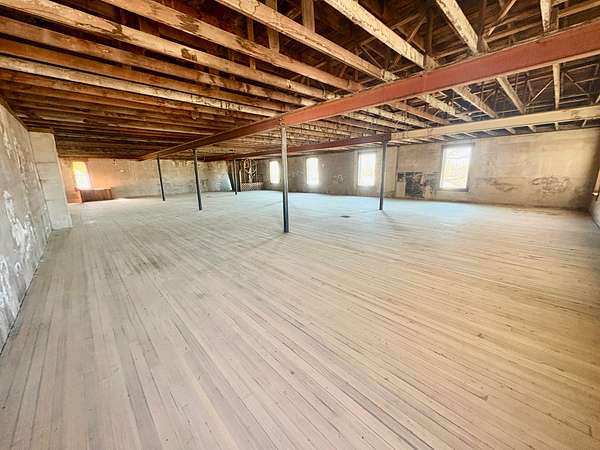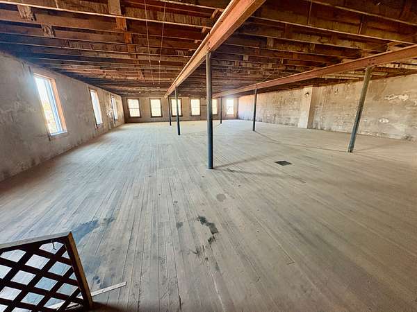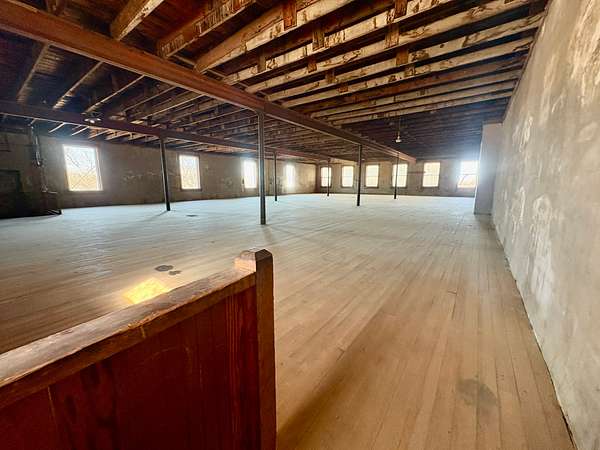 Upstairs, you'll find a substantial open area with endless entrepreneurial potential. Whether envisioned as office suites, studio space, loft-style apartments, co-working areas, or a venue for community events, the upper level offers flexibility and charm enhanced by the warmth of the original hardwood floors.