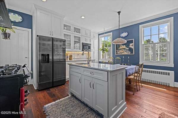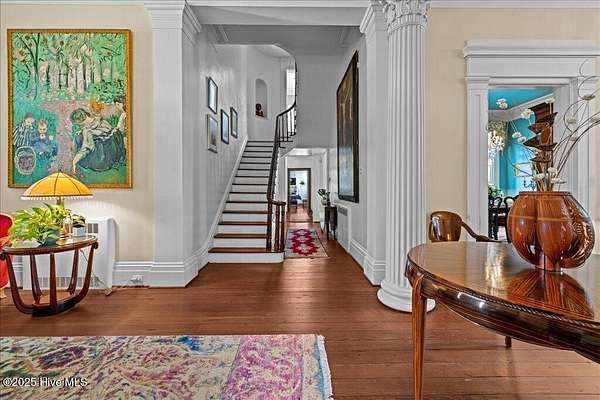 Est $19,915/moA rare offering, Pembroke Hall is a c.1850 Greek Revival estate on 2.5+ acres of exquisite gardens overlooking the Albemarle Sound in historic Edenton. Listed on the National Register of Historic Places, this elegant residence features original heart pine floors and Marie Antoinette crystal chandeliers. The bespoke kitchen includes custom cabinetry and a gas AGA range. Outdoors, enjoy curated rose gardens, lush landscaping, & coastal views. Includes 2 waterfront parcels and a new boardwalk & bulkhead with direct water access.