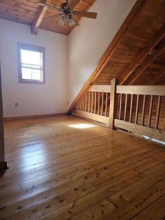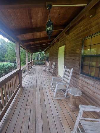 This home sits on 2.6acres and is a 3bedroom 2 bath home. The master bedroom (with a sky light) and bath are on the second floor, the other 2 bedrooms are on the ground floor with a hall bath. The living room has a fireplace and a skylight. All the floors are pine and the walls are pine. The ceiling is pine with exposed beams, very pretty. The bathrooms and kitchen and laundry are tile floors. The kitchen appliances will remain as well as the custom blinds. This is a very nice home with a nice front porch and on the back is a glassed-in porch with a separate a/c unit from the house to cool it off. It will require a new roof and other repairs. The home is being sold as is.