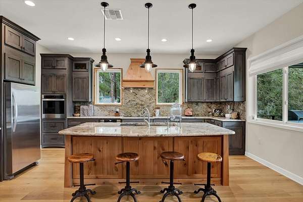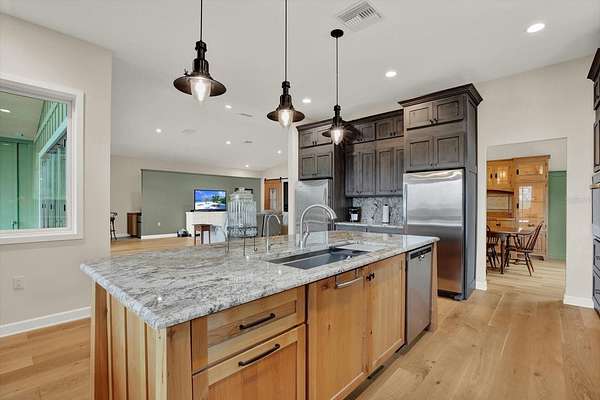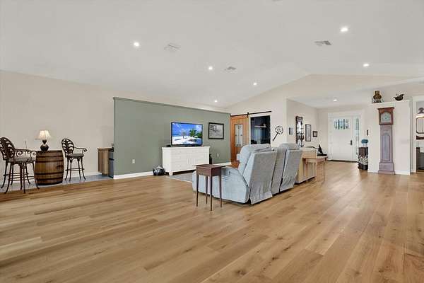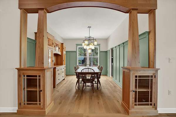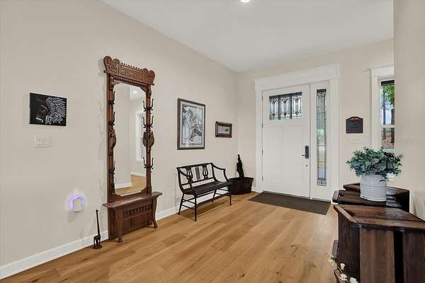 Stunning custom-built 2022 Craftsman-style home situated on over 5 beautiful acres offering breathtaking countryside views and exceptional craftsmanship throughout. This impressive property features 2,931 heated square feet and 6,235 total square feet of thoughtfully designed living space. Inside, you will find custom handcrafted interior trim, real wood cabinetry, elegant granite countertops, and beautiful white oak wood flooring throughout the main living areas. The bedrooms feature comfortable carpeting while the bathrooms offer tile flooring with a heated floor system. A remarkable 15-foot custom accordion glass door opens the main living area to the expansive 633 sq ft screened upper rear porch with composite decking, creating the perfect indoor-outdoor living experience while enjoying the peaceful surroundings. The home also includes a basement with additional living space providing flexibility for entertaining, storage, or extended living. The exterior is equally impressive with a durable metal roof, spray foam insulation, a welcoming front porch, and a lower rear porch overlooking a scenic backyard filled with lush grass, beautiful trees, and abundant wildlife including deer, turkeys, geese, and more. For those needing space for hobbies, equipment, or business use, the property includes an incredible 40x60 insulated red steel workshop with loft storage, concrete floor, metal roof, 14-foot roll-up door, 10-foot roll-up door, and its own 200 amp electrical service. Additional features include a 22KW Generac whole-house generator, 500-gallon in-ground propane tank, two water heaters, water softener system, two A/C units, and 400 amp electrical service split between the home and workshop, with the garage even having its own electrical meter. The property is fenced on three sides with split-rail fencing along the front and includes an outdoor dog washing station with hot and cold water. Enjoy incredible eastern views across open acreage where you may even catch a space launch on clear days. This one-of-a-kind property offers the perfect blend of luxury, privacy, functionality, and peaceful country living while still providing modern conveniences. Schedule your private showing today to experience everything this exceptional property has to offer.