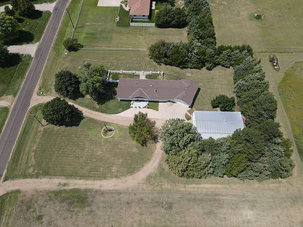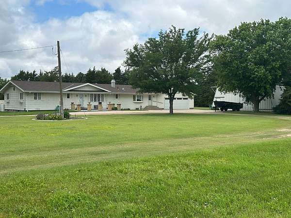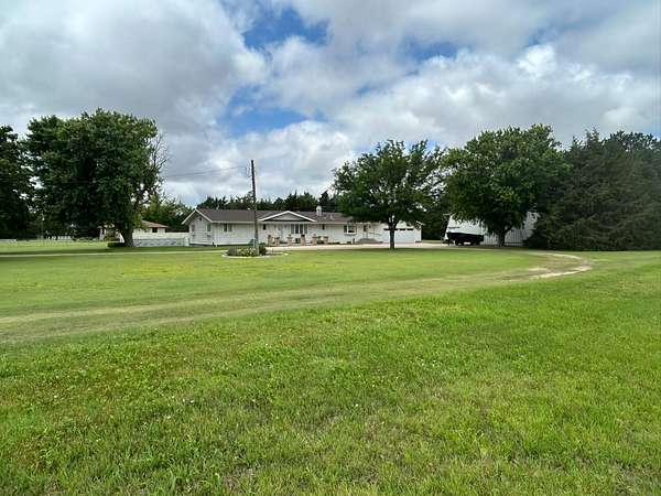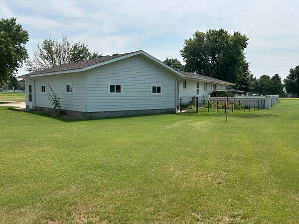 This listing offers the best of country living with the convenience of being just minutes from town. Situated on 1.47 acres outside the Larned city limits, this well-kept ranch-style home delivers space, comfort, and functionality in a peaceful setting, complete with a large shelter belt along the northern edge for added privacy. The main level features 2 bedrooms and 2.5 bathrooms, a welcoming family room with a fireplace, and a formal living room ideal for gatherings. The kitchen stands out with updated counters and a stylish backsplash, while the oversized laundry room includes a sink and generous counter space. A dedicated office area adds flexibility for remote work or hobbies. The partially finished basement provides additional living space with a third bedroom, a second living room, and another cozy fireplace. An attached oversized 2-car garage (36' x 24') gives plenty of room for vehicles, tools, and storage. The property also includes a 40' x 60' storage shed with partial concrete flooring-perfect for equipment or workshop space. With its own private water well and septic system, this home combines self-sufficiency with a quiet rural lifestyle-all in a highly desirable location near Larned. An additional 3.67 acres located directly behind the property is also available for purchase, offering even more possibilities for expansion, recreation, or investment. Don't miss your chance to own this exclusive property-a rare find with room to grow and space to enjoy. Seller's are offering a credit to the buyer for all main floor flooring.