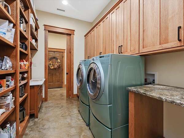This expansive custom built craftsman ranch is a stunning three bedroom, two bath home that offers exquisite first floor living. Notable features include a large and FABULOUS kitchen with Wolf, Subzero and Miele appliances and oversized island. The home has beautiful finished concrete flooring throughout. Want low energy bills? You can't beat geothermal heating and cooling! The wonderful open floor plan showcases spacious rooms, each thoughtfully designed with numerous built-ins, a floor to ceiling stacked stone fireplace and beautiful cabinetry. This passive solar designed home with it's radiant floor heating is surrounded by 10 acres of natural beauty. The property includes beautifully landscaped grounds and gardens, and for even more privacy, it is bordered by 500 acres of nature conservancy buffer on two sides and a farm on the other. If storage is what you need, you'll be amazed by the 1,000 square foot attic, complete with permanent stairs and a separate entrance. Come and create wonderful memories at 1210 Manco Dairy Road!