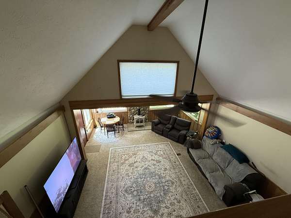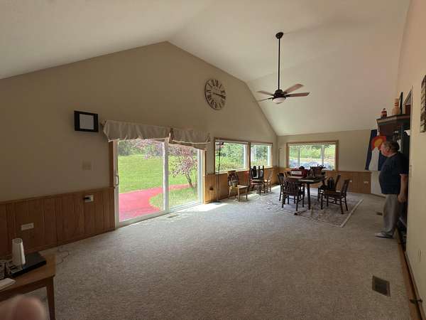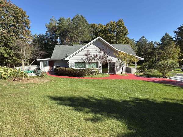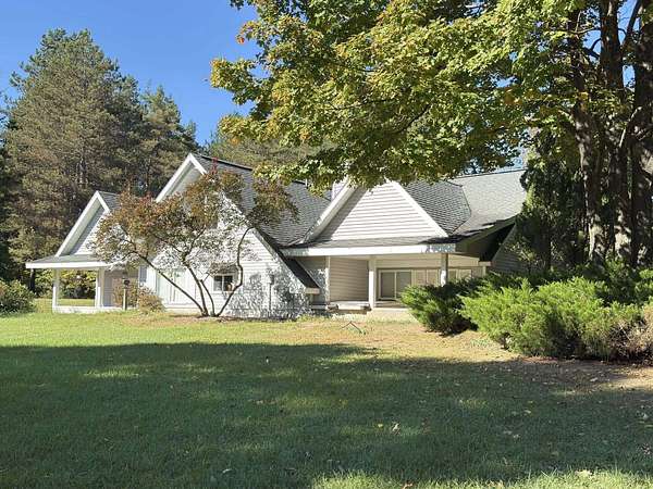 Located just outside of East Jordan, tucked away in the rolling hills close to Lake Charlevoix. Situated on a 6+ acre lot, with a small pond and two outbuildings. 1). 24 x 24' oversized finished one-stall garage 2). 40 x 52 building with two 14' insulated doors, finished interior, small office & bath, and plumbed for heat, plus a paved driveway connecting both buildings with an expansive area for parking. The home features tall ceilings in the large living area with a loft, a large upstairs master with an adjacent bedroom. The home has undergone numerous upgrades, including the Installation of Geothermal heat & natural gas hook-up, but it also requires some cosmetic work and could benefit from additional decorating upgrades. This is a great place for a home-based business or for someone who has a lot of toys to store and work on.