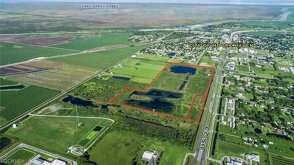 Located on busy US HWY 27, this 66.31+/- acre property zoned and entitled for up to 250 RV / Motorcoach lots + 1,500 feet of Potential Commercial frontage on US Hwy 27, This includes 2 lakes, for lakefront sites. Access to city of Moore Haven utilities including central water & sewer is available. With easy access to the Caloosahatchee River, and Lake Okeechobee, in a central location on State Hwy 27 with direct access to Central & South Florida, this location is ripe for development! (Seller financing also available with sufficient down)