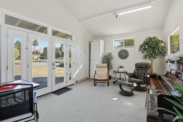 Welcome to this charming 3-bedroom, 2-bath home nestled on 1.99 acres in the desirable San Martin community. Designed for comfort and convenience, the property features a solar system along with central heating and air conditioning. Inside, you'll find a spacious living room that can double as a home office, a cozy family room with a fireplace, and an open-concept layout perfect for entertaining. Additional amenities include an indoor laundry room and a walk-in pantry. Hardwood floors have been refinished. Home has been freshly painted inside and out. Barn exterior freshly painted. Step outside to enjoy an expansive deck with sweeping countryside views and breathtaking golden sunsets. For equestrian enthusiasts, the property is fully equipped with a 5-stall horse barn, tack room, and bonus room. The outdoor bonus space offers endless possibilities whether as a game room, craft studio, she shed, man cave, or simply a relaxing retreat. The pastures are thoughtfully fenced with durable pipe and vinyl fencing, and a sand corral provides ideal space for training and turnout. Whether you're a horse lover, hobby farmer, or simply seeking fresh air and wide-open spaces, this property offers the perfect blend of rural charm and modern comfort.