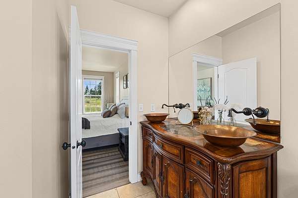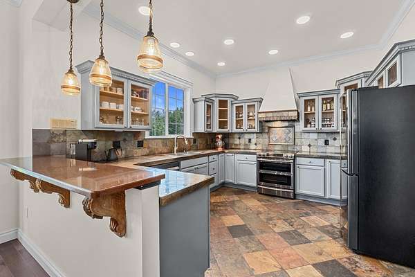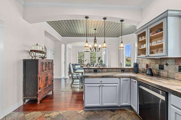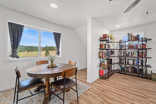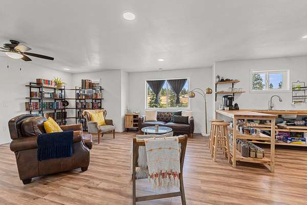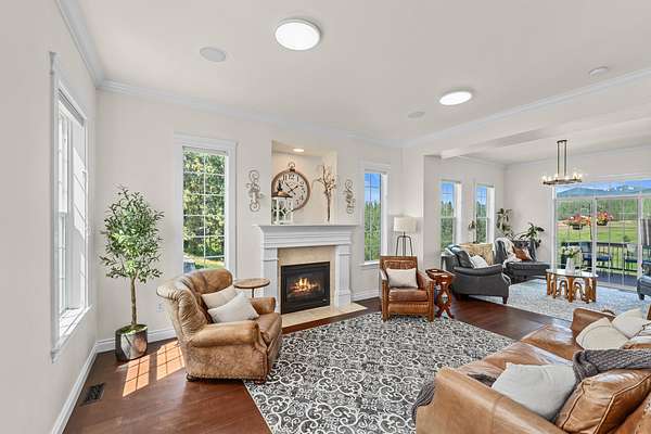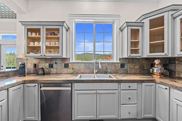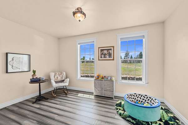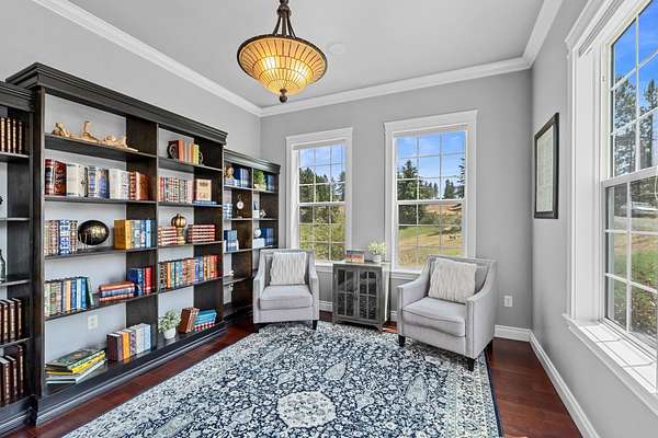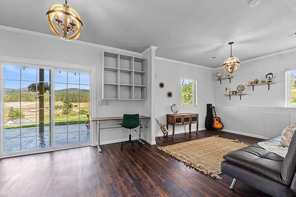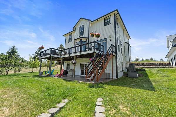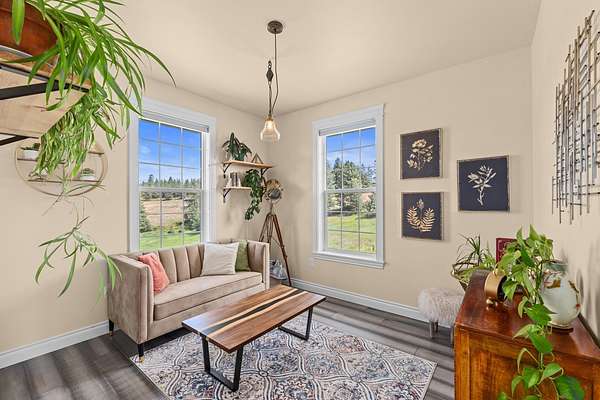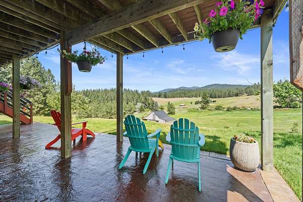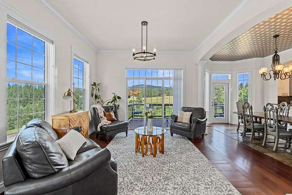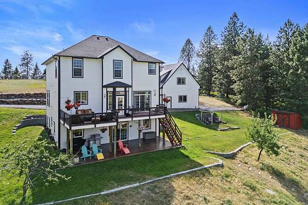 Discover this enchanting 6-bed, 4-bath Colonial on 9.69 acres, offering privacy and Mt. Spokane views. The main home boasts cherry and bamboo floors, crown molding, a library with built-ins, and a formal dining space. The primary suite features a jetted tub, separate shower, marble floors and a large walk in closet. Enjoy main floor or basement utilities and a 2200 KW whole-house generator. Two additional dwelling units provide incredible versatility: a 2-bed, 1-bath apartment above the 3-car garage (400 amp), and a separate 1-bed, 1-bath, 435 sq ft guest house. The expansive grounds include a chicken coop/sheep barn, apple, plum, and cherry trees, and a sprinkler system. This exceptional property offers refined living, natural beauty, and income possibilities. Own your private Greenbluff paradise!
