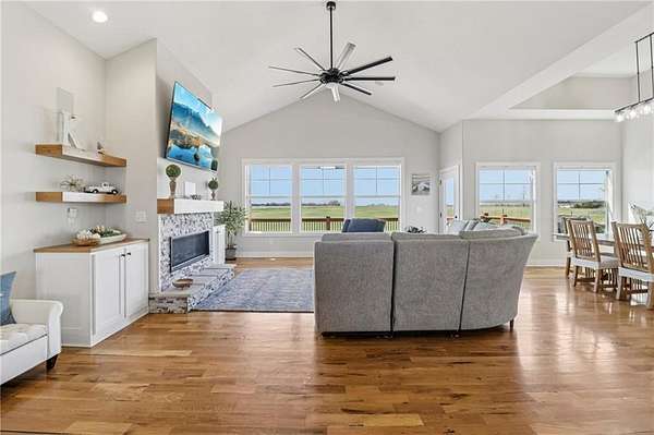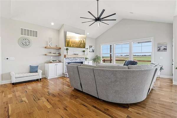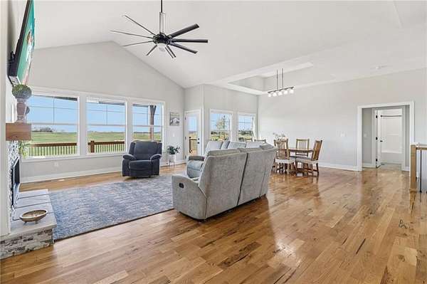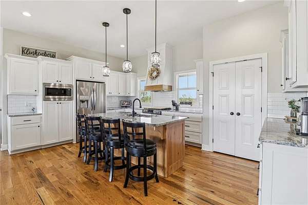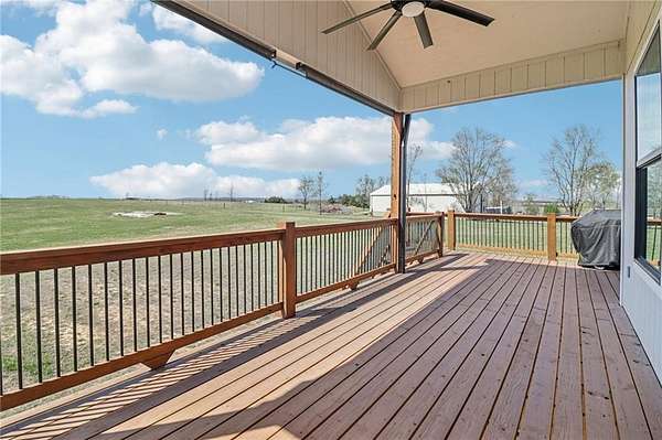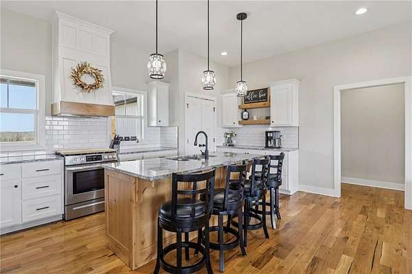 Set on a breathtaking 9.38 acres, this custom-built ranch-style home offers the perfect blend of quality craftsmanship, thoughtful design, and serene country living. From the moment you arrive, you'll be drawn in by the peaceful setting, expansive views, and the sense of privacy that makes this property truly special. Inside, an abundance of natural light fills the home, highlighting the beautiful hardwood floors that flow throughout the main living areas. Designed for comfort and functionality, this home features 3 spacious bedrooms and 2 full bathrooms, all thoughtfully laid out for easy, everyday living. At the heart of the home, the stunning kitchen showcases a large island-perfect for gathering with family and friends or entertaining with ease. The open-concept design seamlessly connects the kitchen to the main living spaces, creating a warm and inviting atmosphere. Step outside to the covered deck and take in the most incredible sunsets-your own private escape. The full walk-out basement offers endless possibilities, ready to be finished to fit your lifestyle-whether you envision additional living space, a home theater, gym, or guest suite. With custom quality throughout, room to roam on nearly 10 acres, and views you'll never tire of, this one-of-a-kind property is the perfect place to call home.