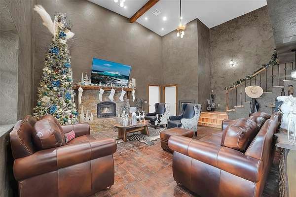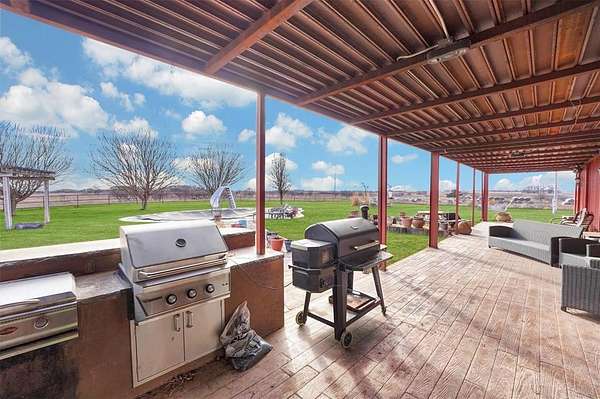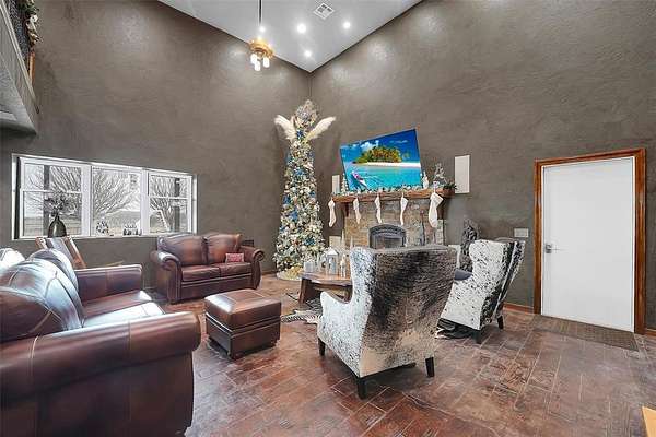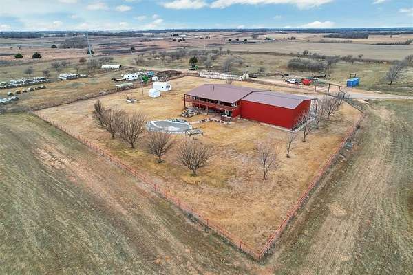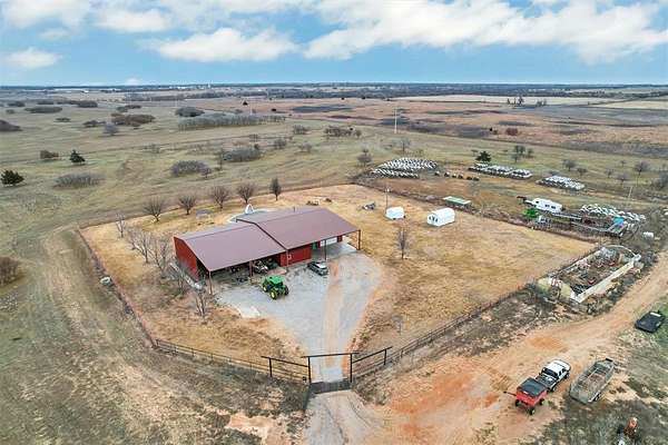 Barndominium of Your Dreams Resting on 270 Acres mol. Swimming Pool! Security Gate Entrance with Auto Opener and Keypad. Working Ranch & 2 Story BARNDOMINIUM With 12' In-Ground Pool with Wading area. 2 Windmills, Cross Fenced to Provide 5 Fenced Areas to Move Cattle. Cattle Working Pens with Squeeze Chute. Whitetail Deer are Plentiful. 40x60x20 Shop area with 6" concrete on South Side of Home with Large Loft and Tall Overhead Door big Enough to Drive a Tractor Inside. Central Vac and Sprinkler System! Water Softener! Home Boasts 20' Ceilings, Open Floorplan, Safe Room / Storm Shelter. Gorgeous Kitchen with Island, Granite Countertops, Built in Double Oven, and Stainless Steel Appliances! Hand Hammered Wood Burning Fireplace with Gorgeous Custom Mantle. Half Bathroom just down the Hall from the Kitchen has a Big Cabinet Area and Across from that is a Big Under Staircase Closet. Primary Bedroom has a Small Closet, Large Closet in the Bathroom and a Separate Closet Room with Decorative Iron Bars to Hang Clothes on. En Suite Bathroom has Walk in Rock / Stone Shower! Inside Laundry is in the Primary Suite. Upstairs You Will Find a Large Living Room, Inside Balcony Overlooking the Downstairs and French Doors take you Out to the Covered Balcony 12x40 Perlin Deck and Enjoy Breathtaking Views. 2 Bedrooms and a Full Bathroom Upstairs. Cultivated Cropland is Approx. 40 Acres mol. Fenced off Area for Hay. Fenced Area Around the Home is Approx. 2 Acres. Large Area for Covered Parking on the North Side of the Home. Videos Available Upon Request! Back Patio has an Outdoor Kitchen & Pizza Oven. Water Well Pumps Fast and can Fill the Pool in 12 Hours.