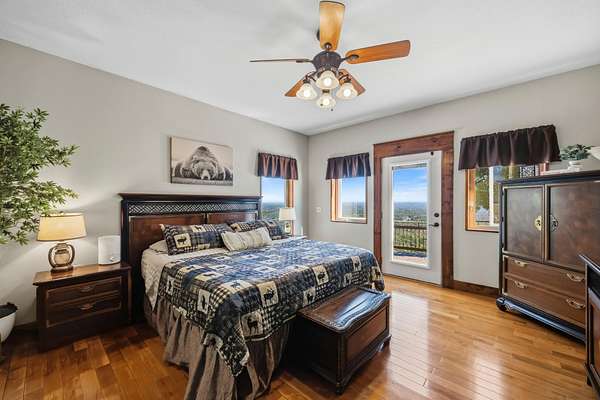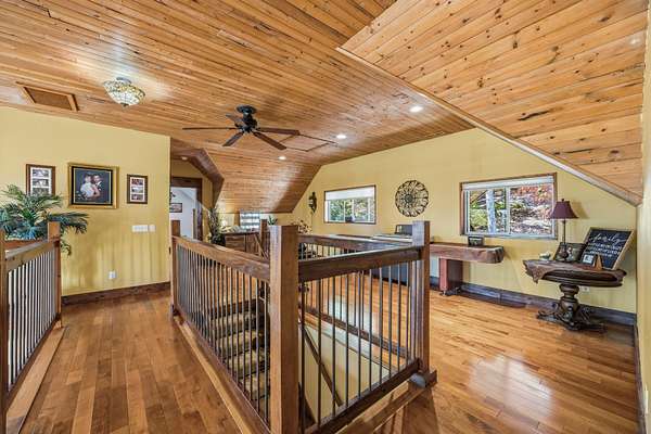 - Upper Level: An open loft overlooks the great room and captures more panoramic views. A large common area and (2) additional bedrooms, each with their own mountain view and full baths, complete this floor.