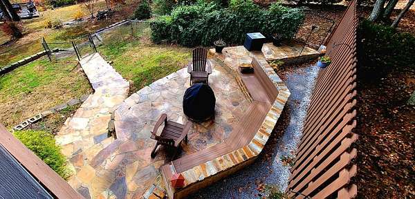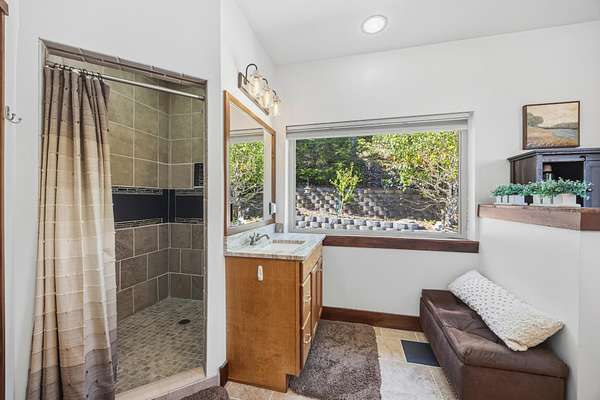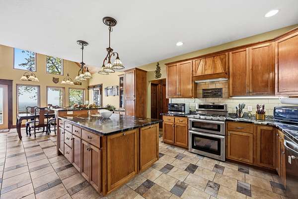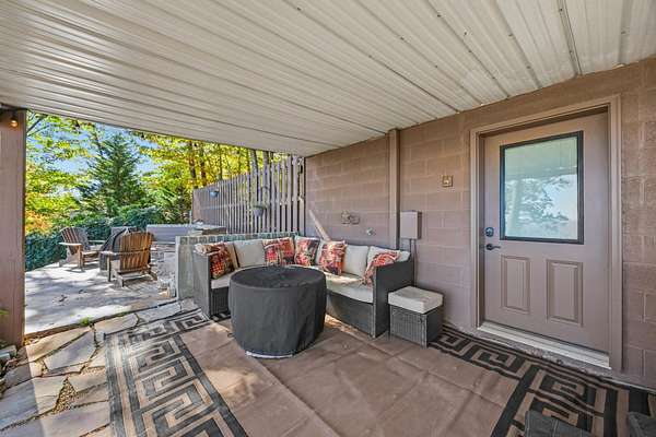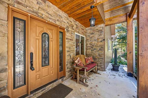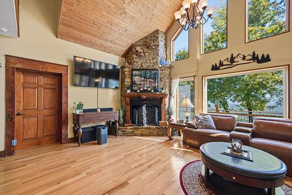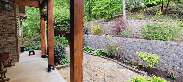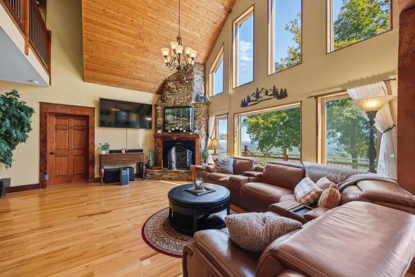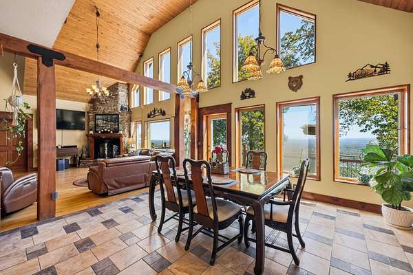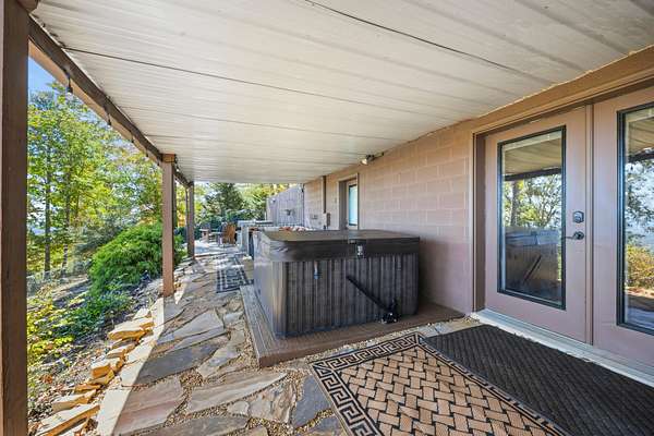 Outdoor living is equally impressive, with an included hot tub, custom stonework highlighting the firepit, benches, and steps. A separate overlook compliments the property boundary with ample seating, firepit, and a bench swing--true craftsmanship throughout, with multiple ways of enjoying the stunning views.