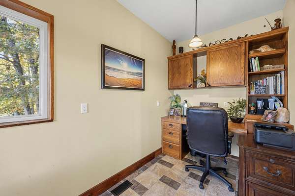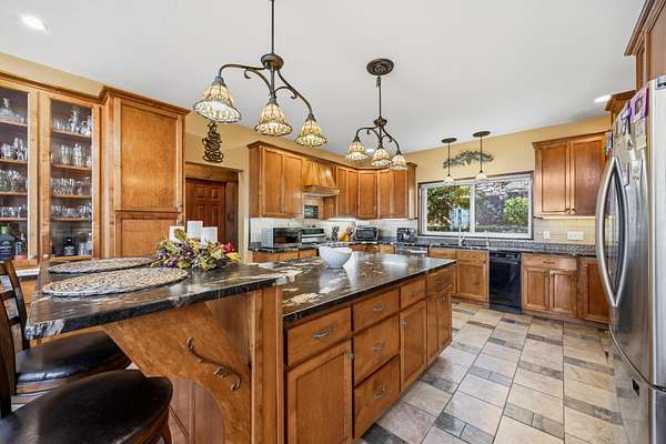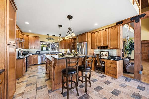 - Workshop / 2-Car Garage: A separate workshop area adds functionality for hobbies or projects. The spacious garage with separate entrances with included storage cabinets around the perimeter